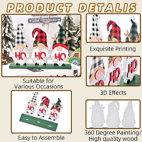 30 Days Return Policy Fast Delivery Trusted seller Christmas Decoration for Home, Rustic Wooden Merry Christmas Sign with Ho Ho Ho Gnomes, Tabletop Xmas Holiday Décor for Living Room, Dining Table, Mantel, Tiered Tray (HOHOHO) Product Description WHIMSICAL CHRISTMAS MAGIC: Bring the enchanting charm of Christmas into your home with our ideal classic Christmas decorations indoor featuring delightful gnomes and the heartwarming HoHoHo quotes. Get ready to be swept away by the festive spirit and the joyous vibes this adorable design brings to your holiday decor. CRAFTED WITH LOVE AND CARE: Crafted from premium wood material and boasting exquisite workmanship through precise laser cut technology, our Christmas gnomes tabletop centerpiece is a testament to the care and attention put into creating a high-quality product that stands the test of time, adding a touch of elegance to your festivities. GNOME-TASTIC DETAILS: Prepare to be captivated by the vivid colors and charming details of each gnome on this rustic Christmas decor. With their lovely round noses and unique hats adorned in classic buffalo plaid patterns, these mischievous little characters will steal hearts. And guess what? One of these Xmas décor gnomes even boasts lovely elk antlers, making them the stars of your holiday decor! SPREAD CHRISTMAS JOY EVERYWHERE: This Merry Christmas sign decoration isn't just meant for your home; it's perfect for adding a dash of holiday magic to any indoor scene! Whether it's your office, store, café, restaurant, or dining area, our wooden Christmas decoration gnomes will infuse every space with Christmas cheer, turning ordinary settings into festive wonderlands. THE GIFT OF HOLIDAY ENCHANTMENT: Looking for the ideal Christmas gift for your loved ones? Look no further! Our Christmas gnomes decoration is the perfect choice to add that touch of magic and warmth to their homes. Give the gift of festive joy and watch their faces light up with smiles, making this holiday season truly unforgettable. Shipping Returns Payment Shipping Shipping is FREE to all addresses other than APO/PO boxes in the lower 48 states. All our stock ships from US-based warehouses. Shipped via USPS or UPS (depending on location and package weight) Unless stated otherwise, all orders will ship within 24-72 hours of your payment being processed. Check our feedback to see the great reviews of FAST shipping we offer. Returns As our valued customer, we will do our best to make sure the product you receive arrives to you on time and as expected. If you are not satisfied with your purchase, please contact us within 30 days of receiving your order to process a return. Payment We currently accept payment via eBay managed payments only. Once payment is cleared, we will dispatch your shipment within 1-3 business days. Please refer to the "Shipping" tab for more information regarding shipping speed to your destination.