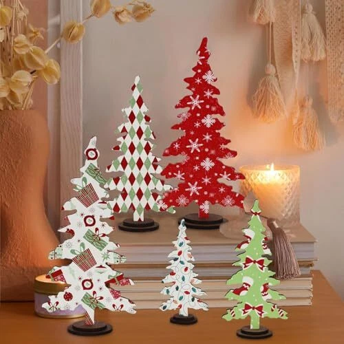 30 Days Return Policy Fast Delivery Trusted seller Christmas Decorations - 5PCS Wooden Christmas Tree Tabletop Decor Sign - Rustic Decorative Freestanding Christmas Tree Centerpiece for Home Shelf Mantel Product Description Enchanting Christmas Scenes -- Transform your space into a joyful wonderland with our wooden Christmas trees which can be put together as a set or divide up during the fun holiday. Exquisite Craftsmanship -- The pack includes 5 intricately designed Christmas classic-style wooden trees in 4 sizes. Slotted base allows the trees to stand securely which makes them easy to store away or future use. Premium Quality -- Made of real wood material, these christmas table centerpieces stand out with exceptional creativity, vibrant patterns, and quality craftsmanship for a perfect seasonal look. Versatile Holiday Touch-- Elevate your holiday decor with chic Christmas centerpieces that effortlessly enhance your mantel, shelves, window ledges, tabletops, etc, or a fun stocking stuffer. Happy Holiday! -- Let the vintage Xmas accents bring a glint of warmth to festive occasions. Share the holiday spirit with family and friends as these charming decorations spread Christmas cheer throughout your home. Shipping Returns Payment Shipping Shipping is FREE to all addresses other than APO/PO boxes in the lower 48 states. All our stock ships from US-based warehouses. Shipped via USPS or UPS (depending on location and package weight) Unless stated otherwise, all orders will ship within 24-72 hours of your payment being processed. Check our feedback to see the great reviews of FAST shipping we offer. Returns As our valued customer, we will do our best to make sure the product you receive arrives to you on time and as expected. If you are not satisfied with your purchase, please contact us within 30 days of receiving your order to process a return. Payment We currently accept payment via eBay managed payments only. Once payment is cleared, we will dispatch your shipment within 1-3 business days. Please refer to the "Shipping" tab for more information regarding shipping speed to your destination.