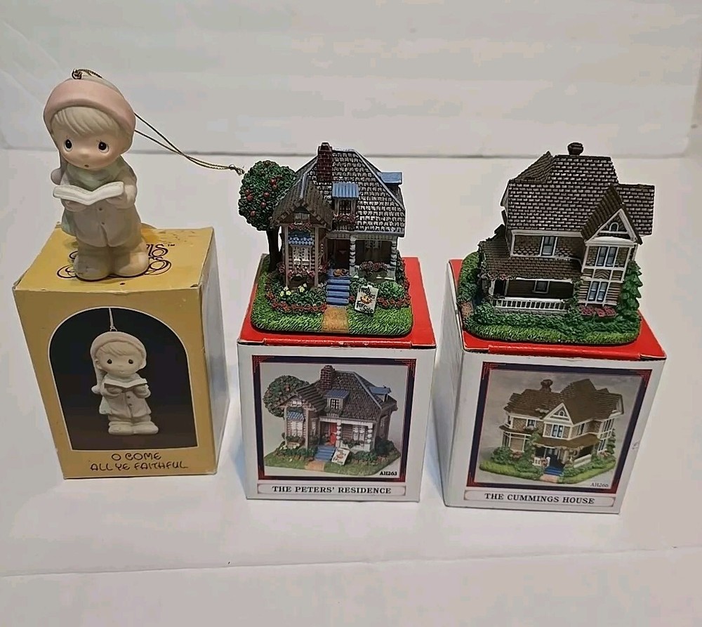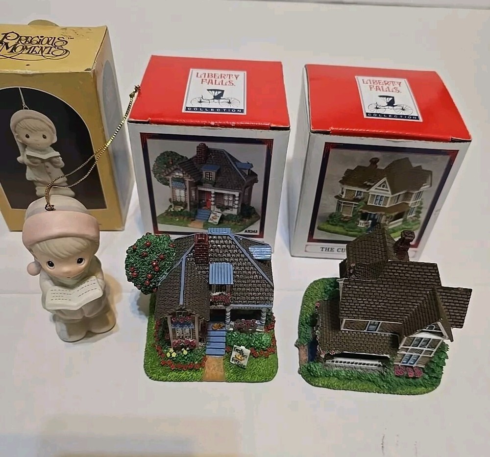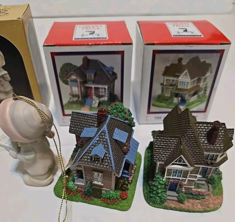 Christmas decorations for holidays 1 precious moments o come all ye faithful 2 box of liberty falls The Peter's residence and the Cummings house Good condition