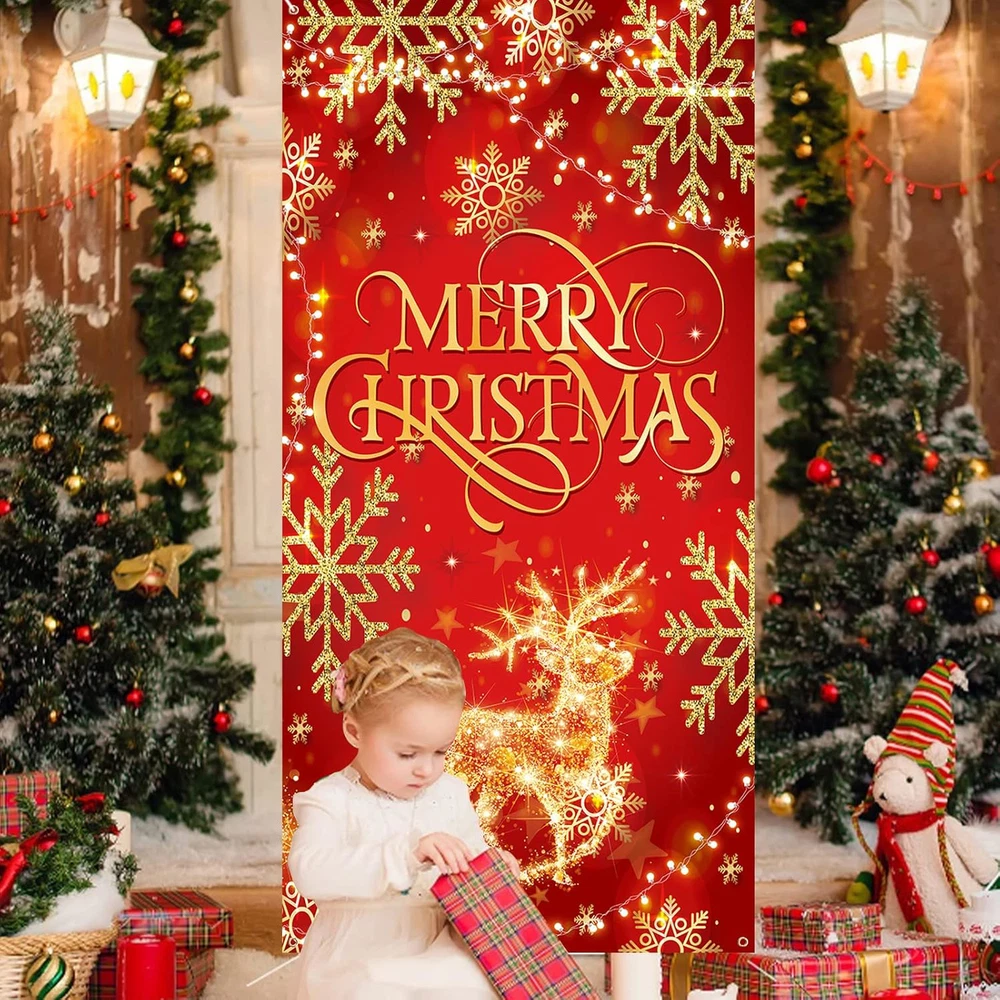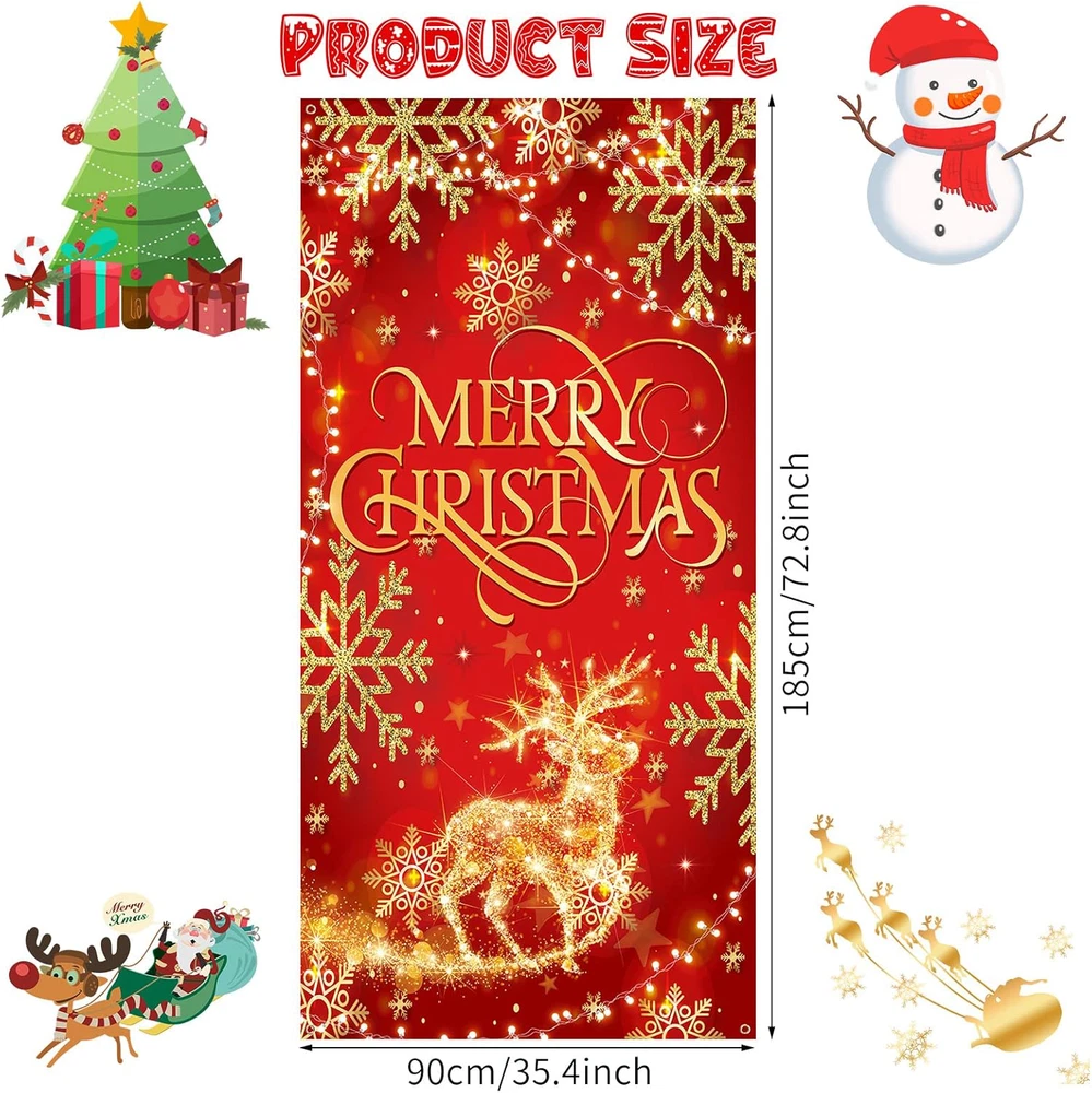 ???????Merry Christmas Decoration???You will get 1 piece large fabric of Merry Christmas door cover banner that measures about 90 x 185cm/35.4 x 72.8 inch with copper rings implanted on each corner. And each set will packaged with 1 pc 6m long rope for you to hang the Xmas backdrop banner up. ???????Exquisite & Funny Design???The design of the Christmas door banner is unique and vivid. The banner is printed with Xmas elements like Santa Claus, snowman, gift, snowflake, elk, candy, christmas tree, gingerbread man, bell and more, which are all classic elements about Christmas Eve, perfect for your festival theme and Christmas party. ???????Premium & Durable Material???The Merry Christmas backdrop banner is made of quality and durable polyester cloth fabric, bright colors, UV fade resistance, reusable, lightweight, double stitched all around the edge with nice craftsmanship, It can easy to carry and clean and be folded for convenient storage, and reused for next New Year Party. ???????Easy to Install & Hanging???Each Christmas door cover sign come with a grommet in each corner, you can connect 4 grommet holes with string and hang it anywhere you want. Such as wall, yard, proch???poles, trees, living room, fence or other places indoor outdoor. Please iron slightly or unfold it before the party if there are creases. ???????Wide Application???The exquisite Christmas poster banner decoration suitable for decorating Xmas themed parties, New Year house parties, indoor or outdoor occasions or other holiday parties, in addition to this, you can also use this xmas backdrop to take commemorative photos with your families and friends, it save your time and effort in decorating and create a festive mood for party quickly and easily. Merry Christmas door cover banner for house yard porch garden fence front door indoor outdoor Xmas party decorations supplies. Features: ???? Durable Material: This Christmas backdrop banner is made of durable fabric material, lightweight, washable and tear-resistant, can be applied for a long time and folded for convenient storage, also easy to carry. ???? Easy To Hang: The Christmas door cover banner comes with a grommet on each corner to hang on your front porch, door or entryway and prevent it from flying around in the wind. ???? Nice Christmas Decoration: This xmas banner background with many classical Christmas elements such as Santa Claus, snowman, gift, snowflake, elk, candy, christmas tree, gingerbread man, bell and ect.which can make your home full of cheerful and fun atmosphere, creating a strong Christmas festival atmosphere and can be widely used in different occasions, such as house, gardan, yard, restaurant, shopping mall etc. Specifications: ?????? Material: Polyester ?????? Size: 35.4 x 72.8 Inch/90 x 185cm ?????? Color: Red Package Includes: ???? 1 x Merry Christmas Banner ???? 1 x 6m Rope Warm Tips: ??? The color may have slight differences, due to different screens. ??? Please allow slight errors, due to manual measurement. ??? Please wash the banner with your hands and dry it in the ventilated place. ??? Folding shipments will produce creases inevitably, please iron the back side (not the image side) with low tempertrue to easily remove the wrinkle. ??? Winding risk may exist, please keep away from the kids.