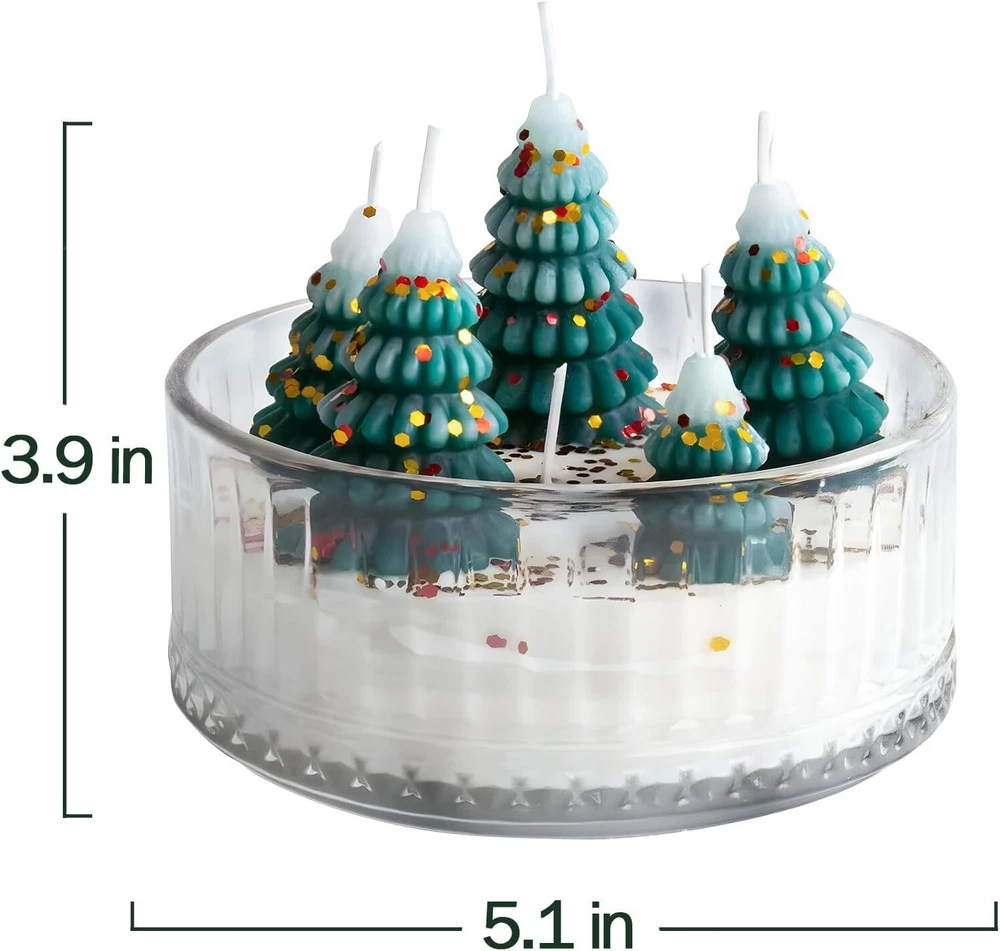 Christmas Decorations Indoor - Tree Cedar Forest Candles - White Product Details Product Dimensions : 5.1 x 5.1 x 3.9 inches; 7.2 ounces Item model number : MG388 Material Feature : Biodegradable Warning Manufacturer : MOREDOTS Country of Origin : China Brand: MOREDOTS Color: White Product Dimensions: 5.1"W x 3.9"H Item Weight: 7.2 ounces Scent: Scented Are Batteries Included: No Indoor/Outdoor Usage: Indoor Specific Uses For Product: Celebration, Decoration Shape: Christmas Tree Material: Soy Wax Elaborate Design : This 26oz Xmas Tree Candle measures 5.1 X 3.9 inches. It features 5 petite Christmas trees with a snow-covered top, perfect for the Christmas season! Suitable vessel : Using recyclable glass vessel will help you avoid getting burned and provide better insulation for heat retention, ensuring a more even and efficient burn. Nature's Charm : The design of 5 cedar trees evokes a sense of woodland wonder, inviting you to lose yourself in nature's gentle embrace and feel the allure of the great outdoors. Winter Bliss : What's winter without the scent of pine? Prepare to cozy up with the warm glow of a lit cedarwood Forest candle, and enjoy the enticing scents of a perfect winter day. Ideal Gifts : Whether you're looking for a Christmas gift for someone else or just want to treat yourself, this Christmas tree candle is sure to impress.