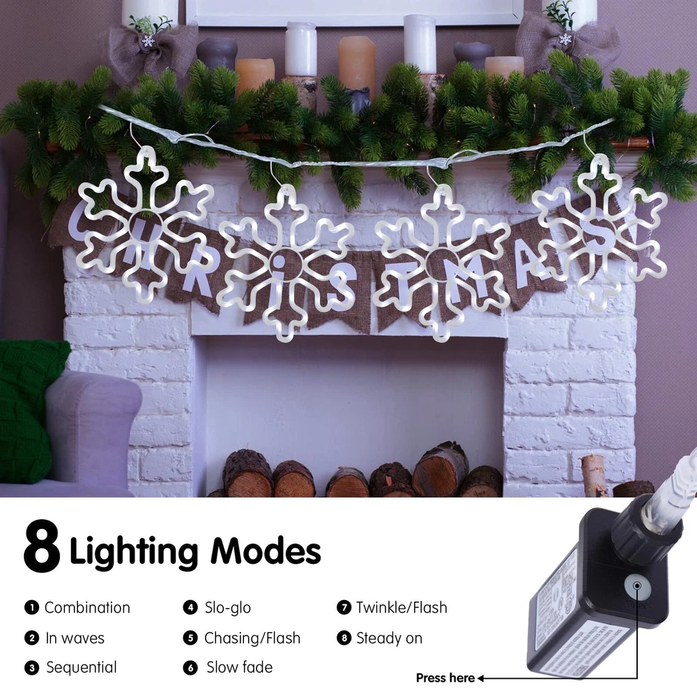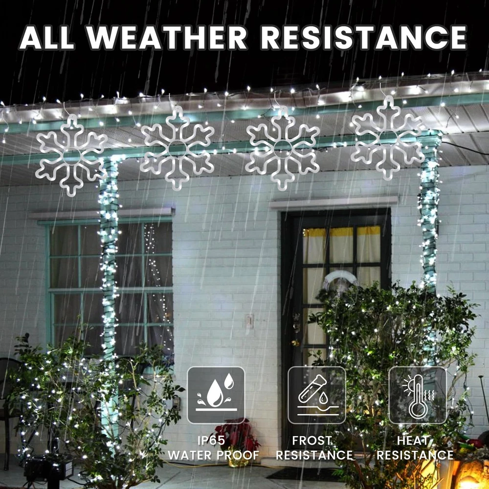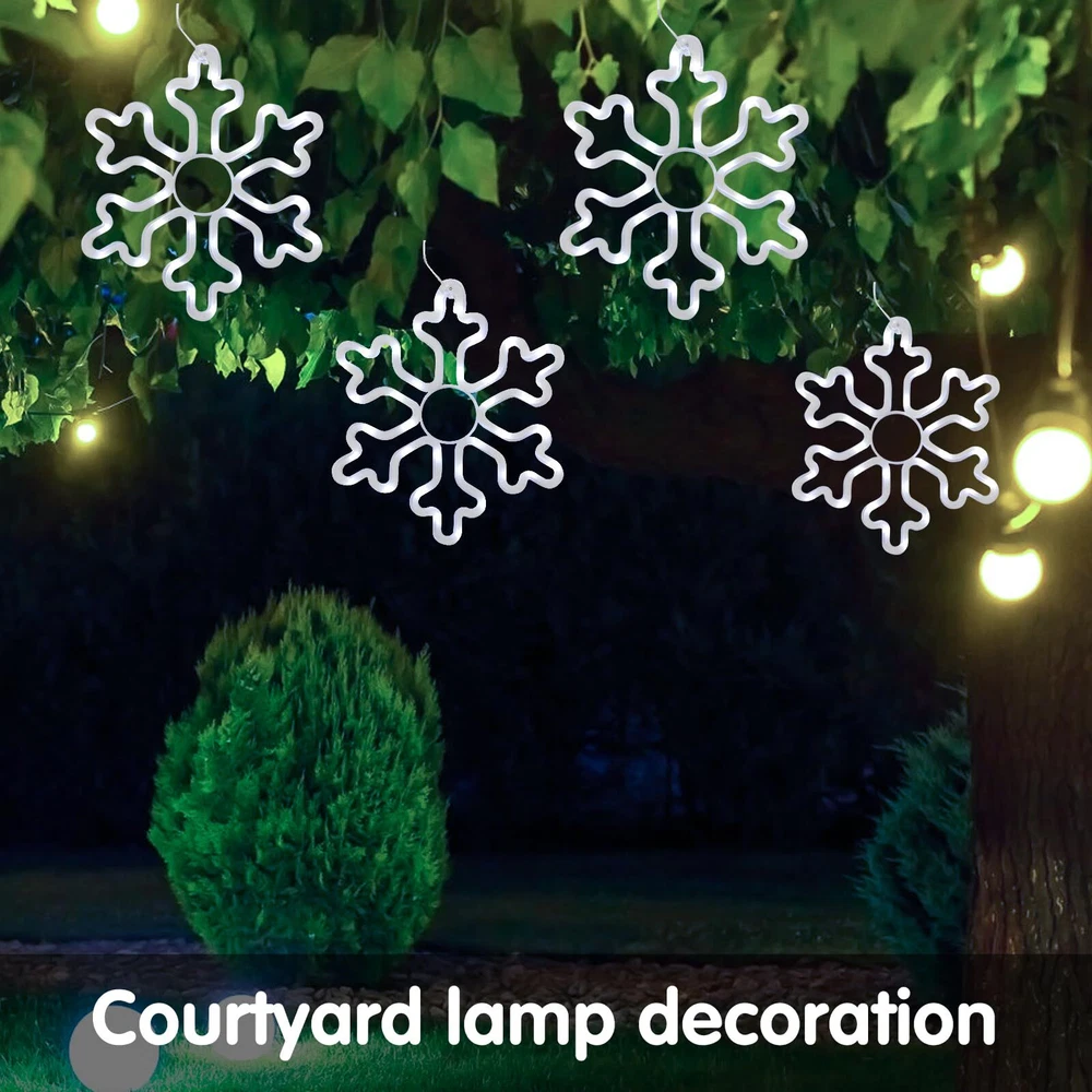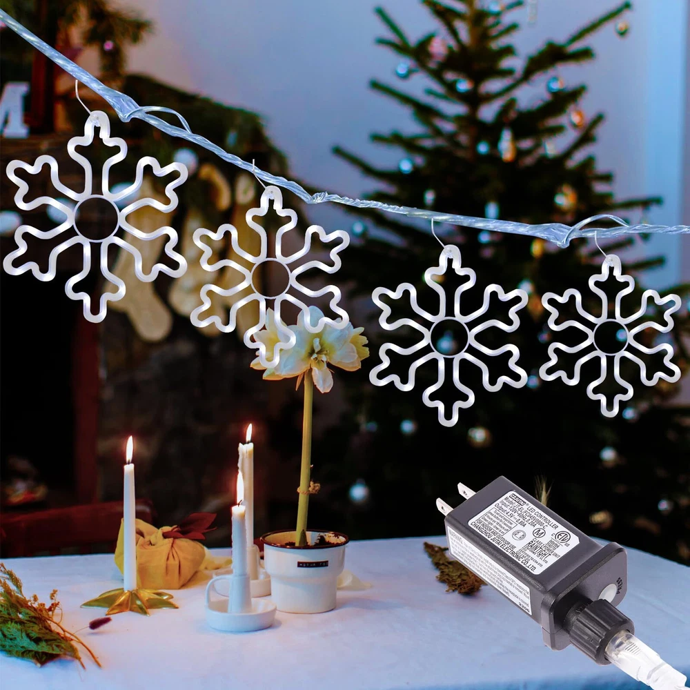 Christmas Decorations snowflake Lights, 4pcs snowflake LED Lights for Christmas Tree and Holiday Seasonal Decoration This christmas snowflake lights work great with christmas trees,windows and outdoor christmas decorations. You can also hang the snowflake lights under the eaves, gutter or porch, place them on fences and stair posts, illuminate windows, arrange on bedroom shelves or furniture, etc. Light up Your Christmas with this snowflake string lights! Perfect indoor outdoor decoration for Christmas tree, wedding, New Year, holiday, birthday, party, festival, bedroom, backdrops, porch, patio, house, stage, etc. Specification: - Total number of bulbs: 144 - Total number of bulbs on each snowflake: 36 led - Size: Snowflake Dia 11.4inch,, plug cable length 5m/16.4ft - Voltage: 29V safe low voltage (Includes UL plug-in transformer) - Power source: Plug-in electric - IP44 Waterproof. NOTE:Please press and hold the round button on the controller until the green light disappears .The timing function is canceled !!! 【About Christmas Decorations Snowflake Lights】The diameter of the snowflake is 11.4inch.There are 36 small led lights on each snowflake.4 pieces snowflake lights with 144LEDs . Plug cable length:16.4ft. Light up Your Christmas with this Christmas snowflake string lights!NOTE:Please press and hold the round button on the controller until the green light disappears .The timing function is canceled !!! 【8 Lighting Modes&Timer and Waterproof】: The christms decorations snowflake lights have 8 different lighting modes: steady on,combination, in waves, sequential, slo-glo, chasing/flash, slow fade and twinkle/flash. IP44 waterproof lighted christmas decorations are perfect for indoor and outdoor decorations. 【Application】: Offers decorative led christmas snowflake lights for party,buildings, wedding ,windows, walkways, patios, gardens, fences, porches, restaurants, clubs, bar etc.High flexibility, temperature sustainability, and UV resistance 【Use Safely &Easy to Installation 】29V low voltage plug with UL certified to ensure safety use.Plug and unplug the power directly to turn on and off.Easy to be hung on a tree or roof to make a decoration to your yard.When you installation, Just hanging the big snowflake on an exterior wall, tree or eaves.It’s great for party,yard indoor outdoor christmas decorations. 【RELIABLE 1 YEAR CUSTOMER SERVICE】If you're unsatisfied with this Christmas snowflake lights for any reason, please feel free to contact us and we will give you a satisfactory solution.