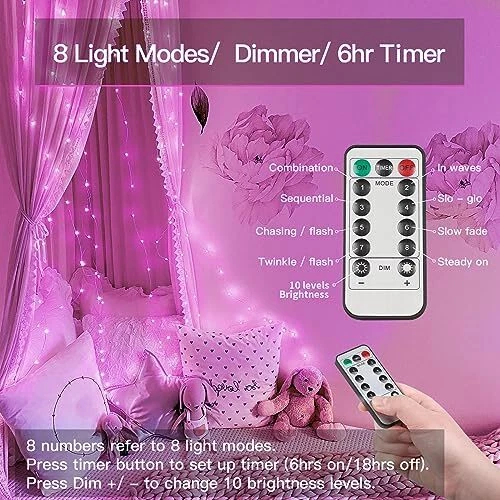 Return Policy Fast Delivery Trusted seller Pink Christmas Fairy Lights Battery Operated Outdoor Waterproof, 66ft 200 Led String Lights with Remote, Twinkle Lights for Valentines Day, Bedroom, Dorm, Tapestry, Party Decorations Product Description ?ILLUMINATE LOVE WITH PINK LIGHTS:Pink valentines lights serve as a enchanting and romantic embellishment for Valentine's Day. Whether delicately draped around a room, elegantly adorning a dinner setting, or framing a cherished moment, these fairy lights add a touch of magic to the celebration. ?REMOTE CONTROL FAIRY LIGHTS: This multifunctional pink Christmas string light is super convenient, and enables us to switch eight flashing modes, and adjust the brightness quickly. Additionally, the timer function allows us to set up on/off time for 6hrs on/ 18hrs off. The twinkle lights will turn on automatically by settings, helping us to create a magic light show in the future. ?FLEXIBLE & SAFE WIRE LIGHTS: This durable Christmas led light line is made of pure copper material. It can easily conform to any shape. We can bend the copper wire over a thousand times, and it will not break. Try to wrap wire lights to anything you like. 66ft fairy light is enough for any indoor and outdoor décor. Moreover, this pink twinkle lights with remote are low heat emission, and safe to touch. ?ULTRA-BRIGHTNESS: The string lights emit pink color. Compare to traditional fairy light, ’s fairy string light has durable copper wires and brighter led bulbs. These string lights with remote allow you to have ten adjustable brightness levels, giving you a different lighting experience. Use it when you have different needs. The dimmable light setting gives you romance feeling. The super bright light setting will add the most twinkling to the Christmas tree. ?PORTABLE PIXIE LIGHTS: This pink twinkle lights battery operated are portable—no more worries when t is no socket or power outage. This outdoor waterproof fairy light can make the most sparkling light show during Christmas. ?WATERPROOF FAIRY LIGHTS: These decorative Christmas lights can keep flashing and shining during wet weather. The IP44 Waterproofed battery box can against wet under splashing water at any angle. ?12 MONTH GUARANTEE: We pursue to provide customers with 100% satisfactory products and services. Your support gives us continuous motivation. If you have any questions about the product, please do not hesitate to contact us. We will be 24/7 hours for you. ?TIPS: Pay attention to protecting children from tangling when they are close to the fairy lights. Shipping Returns Payment Shipping Shipping is FREE to all addresses other than APO/PO boxes in the lower 48 states. All our stock ships from US-based warehouses. Shipped via USPS or UPS (depending on location and package weight) Unless stated otherwise, all orders will ship within 24-72 hours of your payment being processed. Check our feedback to see the great reviews of FAST shipping we offer. Returns Seller does not accept returns Payment We currently accept payment via eBay managed payments only. Once payment is cleared, we will dispatch your shipment within 1-3 business days. Please refer to the "Shipping" tab for more information regarding shipping speed to your destination.