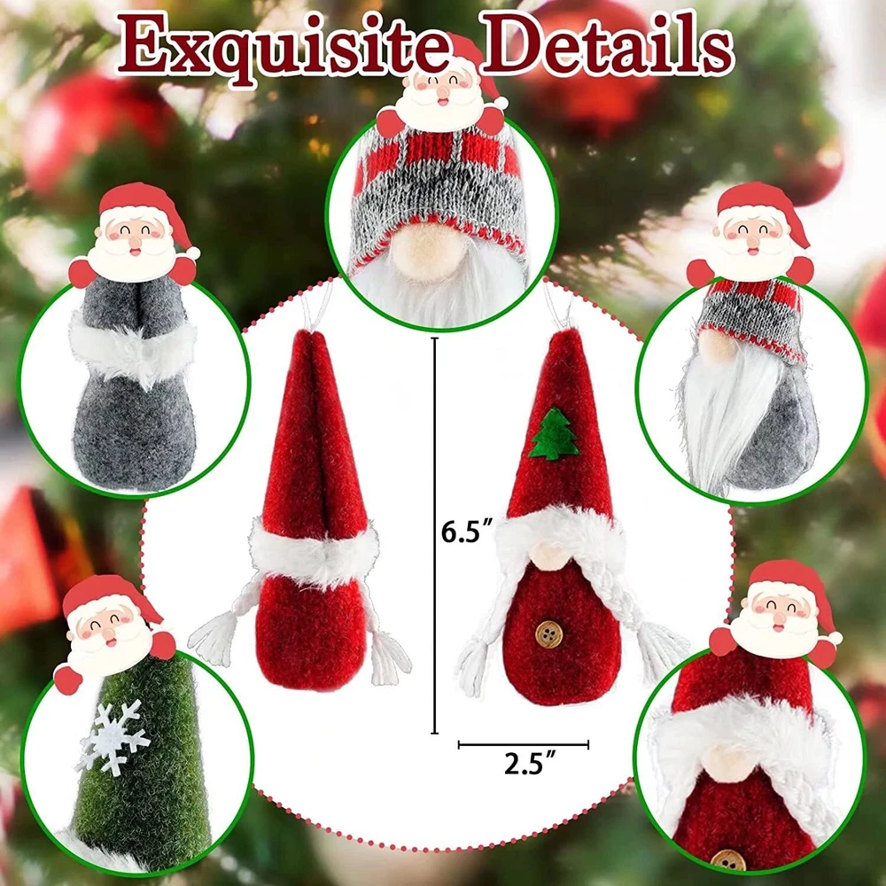 Where You Can Decorate with Them: The Christmas gnome plush ornament are suitable for decorating various places in your home. They are nice for decorating Christmas trees, stairs, fireplaces, home, hall, walls, windows and other places you want to decorate. Ideal Christmas home decoration make your house a more funny and festival atmospheres. 🌲Specifications: Material: Soft cotton, knit-fabric and felt. Color: Multi-colors like red, white, green gray and so on Size: Approx. 6.5 x 2.5 inches Package:8 different styles of gnome ornaments Warm Gift Ideas: These Xmas gnome decors are great Christmas gifts, holiday gifts, birthday gifts, can be given to families, friends or even lovers, which will bring them warmth and happiness. 🎅Cute & Adorable Tree Ornaments - There are 8 different styles of the cute and unique gnome ornaments. Different colors and looks like red, green, gray and white with braid or beard make them strong Christmas atmosphere and festive effect. Great for Xmas decorations clearance. 🎈Multi Functional Gnome Decorations- With the string on top, the gnome ornaments can be decorated on Xmas trees, windows, fireplace, doors or walls. They can also be clipped on keys or schoolbag as gnome keychains or Xmas pendants. 💝Hand, Full Size - Each gnome ornament is 2.5x6.5". The proper size and layout is easy to attract people's attention, and can well match with other decorations like Xmas trees, stairs and as Christmas stocking stuffers. 🍀Soft Cotton Made - The gnome ornament decorations are made of environmental-friendly cottons, knit-fabric and felt. Touch soft and comfortable. Elements of Santa Claus and gnomes combines great and cute, bringing good luck and happiness to you. 🎁Holiday Gifts Ideas - Delicate and exquisite details and adorable appearances of gnomes will definitely attract and adults. Good choice for Christmas party supplies and party decorations, Xmas gifts for , your friends and families.
