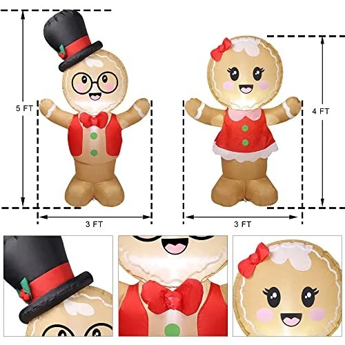 30 Days Return Policy Fast Delivery Trusted seller Christmas Inflatable Decoration, 5FT Set of 2 Blowup Welcome Gingerbread Man Couple, Adorable Xmas Inflatable Ginger Bread Man for Winter Holiday Garden Yard Lawn Outdoor Indoor Decor Product Description ALL IN ONE SET: Package includes un-inflated item with power adapter and blower*1, 3.3FT tie strings*4, plastic stakes*8, and package drawstring bag*1. The boy gingerbread man is 5ft in height and the girl is 4ft in height after being fully inflated. ADORABLE GINGERBREAD MAN: Girl and boy gingerbread men are dressed in decent cloth, and happily wave their hands wearing warm smile on their face, as if they're giving the coming winter and Christmas great welcome. They can be placed apart on both sides of the door and bring wonderful holiday touch to your area. LIGHT UP AT NIGHT: Christmas inflatable décor is equipped with 2 built-in bright LED lights to make it great beautiful and appealing at night, allowing for night viewing and bringing great holiday touch, which will certainly light up your winter night. STAND WELL: Once plugged in, the built-in fan helps the inflatable gingerbread man be fully inflated in a really short time. The package also comes with 8 stakes and 4 stings of 3.3ft-long ropes to well fix the inflatable item on the ground to make it good appearance, and 2 extra built-in sand bags avoid being blow away with the wind. WONDERFUL CHRISTMAS DÉCOR: inflatable gingerbread man is really ideal to be placed at yard, garden, patio, front door, and other indoor and outdoor places as a decoration to celebrate the Christmas and welcome the year to come. As ONLY the polyester fabric cloth is waterproof, please keep the blower and adapter from rain or water. Shipping Returns Payment Shipping Shipping is FREE to all addresses other than APO/PO boxes in the lower 48 states. All our stock ships from US-based warehouses. Shipped via USPS or UPS (depending on location and package weight) Unless stated otherwise, all orders will ship within 24-72 hours of your payment being processed. Check our feedback to see the great reviews of FAST shipping we offer. Returns As our valued customer, we will do our best to make sure the product you receive arrives to you on time and as expected. If you are not satisfied with your purchase, please contact us within 30 days of receiving your order to process a return. Payment We currently accept payment via eBay managed payments only. Once payment is cleared, we will dispatch your shipment within 1-3 business days. Please refer to the "Shipping" tab for more information regarding shipping speed to your destination.