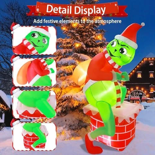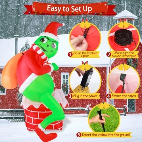 30 Days Return Policy Fast Delivery Trusted seller Christmas Inflatable Outdoor Decoration 6FT Santa Green Giant Mouth Monster Inflatable Yard Blow Up for Xmas Blowups Outside Holiday Seasons Product Description Unique Design: Make your holiday decorations unforgettable with the 6ft Santa Green Giant Mouth Monster inflatable. Features a vibrant green monster with a friendly mouth, wearing a classic Santa hat and carrying a huge bag on his shoulder. The monster is humorously posed climbing into a chimney, blending Christmas cheer with a playful twist. Its expressive eyes and exaggerated features make it a perfect addition to any festive display, capturing the fun and whimsy of the holiday Bright Built-in Lights: Our Santa Green Giant Mouth Monster inflatable featuring bright built-in lights that make this charming monster come to life after dark. The internal lighting not only highlights the monster's vivid colors and whimsical details but also ensures it stands out beautifully in your yard, even from a distance.These lights create a captivating and festive atmosp, making this inflatable a must have for any holiday decor enthusiast looking to impress visitors and passersby Durable and Waterproof: Crafted from premium materials, built to withstand the elements, ensuring long-lasting use throughout the holiday season. Not only waterproof but also resistant to fading and tearing, making it ideal for displays in various weather conditions. Whether it's rain, snow, or sunshine, this inflatable maintains its vibrant colors and festive charm. This inflatable monster is designed for both durability and aesthetic appeal, making it a standout piece in any holiday setup Perfect Size & Easy to Set Up and Store: This inflatable is as practical as it is entertaining. With easy blowups setup and takedown, it's ideal for quick holiday decorating. When the season ends, it deflates and stores compactly, making it a convenient addition to your collection of yard decorations, whether it's for Christmas, Halloween, or any festive occasion Versatile Outdoor Decoration for All Seasons: Whether it's a Christmas vacation, a spooky Halloween, or any holiday in between, this giant Santa monster fits right in. Its funny and scary design makes it a versatile outdoor inflatable that brings joy and a touch of fright to your yard decorations Shipping Returns Payment Shipping Shipping is FREE to all addresses other than APO/PO boxes in the lower 48 states. All our stock ships from US-based warehouses. Shipped via USPS or UPS (depending on location and package weight) Unless stated otherwise, all orders will ship within 24-72 hours of your payment being processed. Check our feedback to see the great reviews of FAST shipping we offer. Returns As our valued customer, we will do our best to make sure the product you receive arrives to you on time and as expected. If you are not satisfied with your purchase, please contact us within 30 days of receiving your order to process a return. Payment We currently accept payment via eBay managed payments only. Once payment is cleared, we will dispatch your shipment within 1-3 business days. Please refer to the "Shipping" tab for more information regarding shipping speed to your destination.