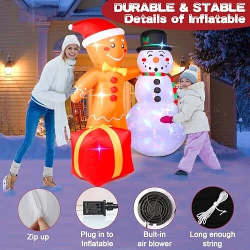 30 Days Return Policy Fast Delivery Trusted seller Christmas Inflatables Outdoor Decoration, Cute 6 FT Snowman Gingerbread Christmas Decorations, Build-in LEDs, Stable Christmas Blow Ups Yard Decorations for Holiday Indoor Xmas Party Garden Lawn Décor Product Description Christmas Inflatable Outdoor Decoration - Eye-Catching Design: Welcome the holidays in style with this charming 6 FT Gingerbread Man & Snowman Inflatable! These two friendly faces, glowing with joy, will transform your yard into a festive wonderland that will warm the hearts of neighbors, guests, and your family. Let their bright, colorful lights bring your Christmas yard decorations outdoor to life, spreading holiday cheer far and wide Christmas Blow Ups - Light Up the Night with Festive Glow: Christmas decorations outside Gingerbread man inflatable with Christmas gift boxes built-in 3 white LED lights, Snowman inflatable built-in 1 rotating colorful light. As night falls, watch your yard glow with holiday magic, to bring joyful vibes to your neighbors, friends, and family for extra holiday cheer. These outdoor Christmas decorations will ensure your house shines the brightest on the block Christmas Inflatables - Effortless Setup: Decorating for the holidays has never been easier! Simply plug in this delightful snowman Christmas decorations and watch as it inflates in seconds. Thanks to the 6 ground stakes, 2 sturdy ropes, and built-in sandbags, you can rest assured that Christmas lawn decorations will stay secure, even through winter winds. Christmas blow ups is a perfect choice for busy families looking to add instant holiday joy to their outdoor Christmas decorations Blow Up Christmas Decorations Outdoor - Durable and Weather-Resistant: Made from durable, waterproof polyester, this outdoor Christmas decor gingerbread man inflatable is designed to withstand whatever winter throws its way. With premium stitching and high-quality materials, this outdoor holiday decorations will stay vibrant and intact throughout the entire holiday season, ensuring your outdoor Christmas blow up decorations continue spreading joy no matter the weather Perfect Gift for Xmas Decoration: This inflatable isn’t just a snowman Christmas decorations—it’s a gift waiting to be shared! It comes packed in a festive Christmas-themed box, making it an ideal present for family and friends. Once the season is over, it can be stored away safely for use next year, ensuring that your holiday decorations are easy to organize and ready for future celebrations. This thoughtful design adds both convenience and delight to your Christmas decorations outdoor Shipping Returns Payment Shipping Shipping is FREE to all addresses other than APO/PO boxes in the lower 48 states. All our stock ships from US-based warehouses. Shipped via USPS or UPS (depending on location and package weight) Unless stated otherwise, all orders will ship within 24-72 hours of your payment being processed. Check our feedback to see the great reviews of FAST shipping we offer. Returns As our valued customer, we will do our best to make sure the product you receive arrives to you on time and as expected. If you are not satisfied with your purchase, please contact us within 30 days of receiving your order to process a return. Payment We currently accept payment via eBay managed payments only. Once payment is cleared, we will dispatch your shipment within 1-3 business days. Please refer to the "Shipping" tab for more information regarding shipping speed to your destination.