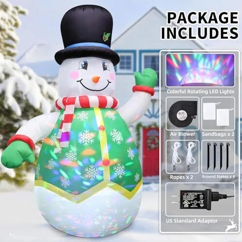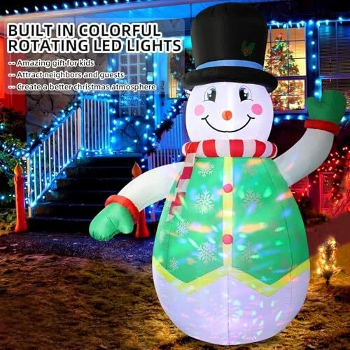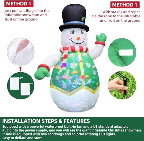 30 Days Return Policy Fast Delivery Trusted seller Christmas Inflatables Snowman Outdoor Decorations 8FT, Blow Up Yard Decorations Inflatable Xmas Snowman with Rotating Colorful LED Lights for Lawn Garden Party Holiday Decor Product Description 8FT GIANT INFLATABLE CHRISTMAS SNOWMAN: Contains many Christmas elements, Bright colors, eye-catching, and super atmospheric. 8FT inflatable Christmas snowmen say hello to them when your kids or your guests come to the door or garden COLORFUL ROTATING LED LIGHT: Super bright white and colorful rotating LED lights are built into the inflatable Christmas yard decorations. The colorful colors constantly changing, eye-catching, and bright, light up your lawn or garden at night for a charming and cheerful holiday! Attract the eyes of neighbors and children, and let your yard stand out SELFINFLATING & EASY TO STORE: Setting up the Xmas outdoor decorations is hassle-free. Plug it in, and the built-in air pump quickly inflates it to its full 8ft height. When the holiday season ends, it deflates easily for compact storage, allowing you to enjoy its playful charm year after year. TIPS: Please do not place anything in the inflatable snowman DURABLE MATERIAL: The inflatable outdoor decorations are designed to be stable and inflatable during the holiday. They are made of 210T high-strength polyester fabric material and long-lasting solid build WHAT YOU GET: 1x 8ft inflatable Snowman, 1x blower, 1x UL adapter, 2x plain sandbags, 2x rope,4x ground stakes. Light enough to place the Christmas inflatable outdoor decoration anyw you want. The fastening ropes and ground stakes make it stable enough, unable to fly away with the wind. Let this cute snowman accompany you and your family to spend a wonderful Christmas! Shipping Returns Payment Shipping Shipping is FREE to all addresses other than APO/PO boxes in the lower 48 states. All our stock ships from US-based warehouses. Shipped via USPS or UPS (depending on location and package weight) Unless stated otherwise, all orders will ship within 24-72 hours of your payment being processed. Check our feedback to see the great reviews of FAST shipping we offer. Returns As our valued customer, we will do our best to make sure the product you receive arrives to you on time and as expected. If you are not satisfied with your purchase, please contact us within 30 days of receiving your order to process a return. Payment We currently accept payment via eBay managed payments only. Once payment is cleared, we will dispatch your shipment within 1-3 business days. Please refer to the "Shipping" tab for more information regarding shipping speed to your destination.