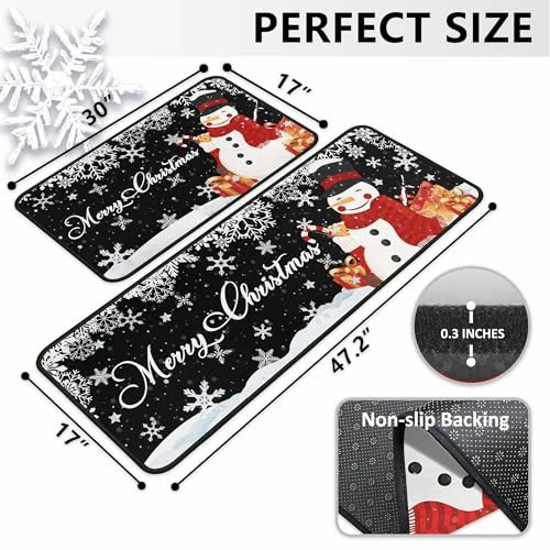 Return Policy Fast Delivery Trusted seller Christmas Kitchen Mats Set of 2, Christmas Decorations for Home, Snowman Kitchen Rugs Non-Slip Backing Winter Holiday Floor Mat Xmas Decor Washable Runner Rug 17"x47.2"+17"x30" Product Description NON SLIP BACKING:The Christmas kitchen rugs and mats come with non-skid backing, which holds the rugs in place for extra safety, and helps prevent slipping or tripping. You don't have to worry about slipping or scratching the floor. The Christmas kitchen mat can be used for multiple surfaces(wood, ceramic, marble, tiles, laminate, etc) CHRISTMAS DECORATIONS FOR HOME: Our Christmas kitchen mats were printed with Merry Christmas and Christmas ornaments pattern, create a Christmas atmosp holiday blessings for your home. Decor your home perfectly during Christmas holiday, and keep your home clean. You will love washing dishes, baking, and cooking when standing in on the Christmas kitchen mat. Suitable for kitchen, farmhouse, the entry way, doorway, hallway and high traffic areas. PREMIUM MATERIAL: The Christmas kitchen mats for floor are made of high-quality microfibre and premium non-skid latex backing that make the mat keep in place well, ensure safety, offer strong skid resistance to prevent shifting or slipping, durable, fade and wear resistant.Absorbs water and dries quickly, protect your kitchen floor from moisture and stain. Keep your rooms clean. SUITABLE SIZE: This Christmas anti fatigue kitchen mat contains 2 rectangular mats (17"x47.2" and 17"x30"). These two different sizes make them suitable for most kitchen or other areas of the home. Our Christmas floor mats for kitchen make a beautiful addition to your kitchen, dining room or other places. Suitable for Christmas decor. EASY TO CLEAN: Our Christmas kitchen rug is made of premium material, low pile height, machine washable. You can also use a vacuum cleaner or wipe with a damp cloth. Regular cleaning can make the Christmas kitchen rugs and mats sets last longer, easy for you to take care of it, and save your time. Christmas kitchen accessories and decor, make your home beautiful. Shipping Returns Payment Shipping Shipping is FREE to all addresses other than APO/PO boxes in the lower 48 states. All our stock ships from US-based warehouses. Shipped via USPS or UPS (depending on location and package weight) Unless stated otherwise, all orders will ship within 24-72 hours of your payment being processed. Check our feedback to see the great reviews of FAST shipping we offer. Returns Seller does not accept returns Payment We currently accept payment via eBay managed payments only. Once payment is cleared, we will dispatch your shipment within 1-3 business days. Please refer to the "Shipping" tab for more information regarding shipping speed to your destination.