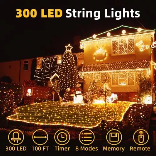 Return Policy Fast Delivery Trusted seller Christmas Led Lights Outdoor, 100ft 300 Led Warm White Christmas String Lights for Tree Holiday Party Garden,Timer & Memory Function & 8 Modes of Christmas Lights Product Description Remote Control Functionality: Our Christmas led lights effortlessly control the lights from a distance with the remote, which operates from up to 26-32ft away. Whether indoors or outdoors, adjust the lighting without moving a step. Smart Timer Function: The Christmas led lights outdoor feature a built-in timer that automatically turns them on for 6 hours and off for 18 hours. This smart feature enhances convenience in your daily life. Adjustable Brightness&waterproof : The warm white Christmas string light's IP44 waterproof design enhances durability and safety, making it suitable for use in various weather conditions. Customize the brightness to suit different occasions or moods (100%, 75%, 50%, 25%). Whether you're creating a cozy holiday atmosp or adding a highlight to family gatherings, this Christmas string light is an essential choice. Power Memory Function: Once set, the timer and brightness settings are saved even if the power is interrupted and restored. This intelligent memory function ensures consistent lighting effects every time you use it. Versatile Application: The Christmas string lights for outdoor&indoor with 300 LED bulbs spanning 100ft, and the ability to connect up to 3 sets, it's ideal for decorating both indoor and outdoor spaces such as gardens, patios, hotels, and parks. Perfect for Halloween and Christmas decorations, as well as holiday celebrations, performances, and home gatherings. Shipping Returns Payment Shipping Shipping is FREE to all addresses other than APO/PO boxes in the lower 48 states. All our stock ships from US-based warehouses. Shipped via USPS or UPS (depending on location and package weight) Unless stated otherwise, all orders will ship within 24-72 hours of your payment being processed. Check our feedback to see the great reviews of FAST shipping we offer. Returns Seller does not accept returns Payment We currently accept payment via eBay managed payments only. Once payment is cleared, we will dispatch your shipment within 1-3 business days. Please refer to the "Shipping" tab for more information regarding shipping speed to your destination.