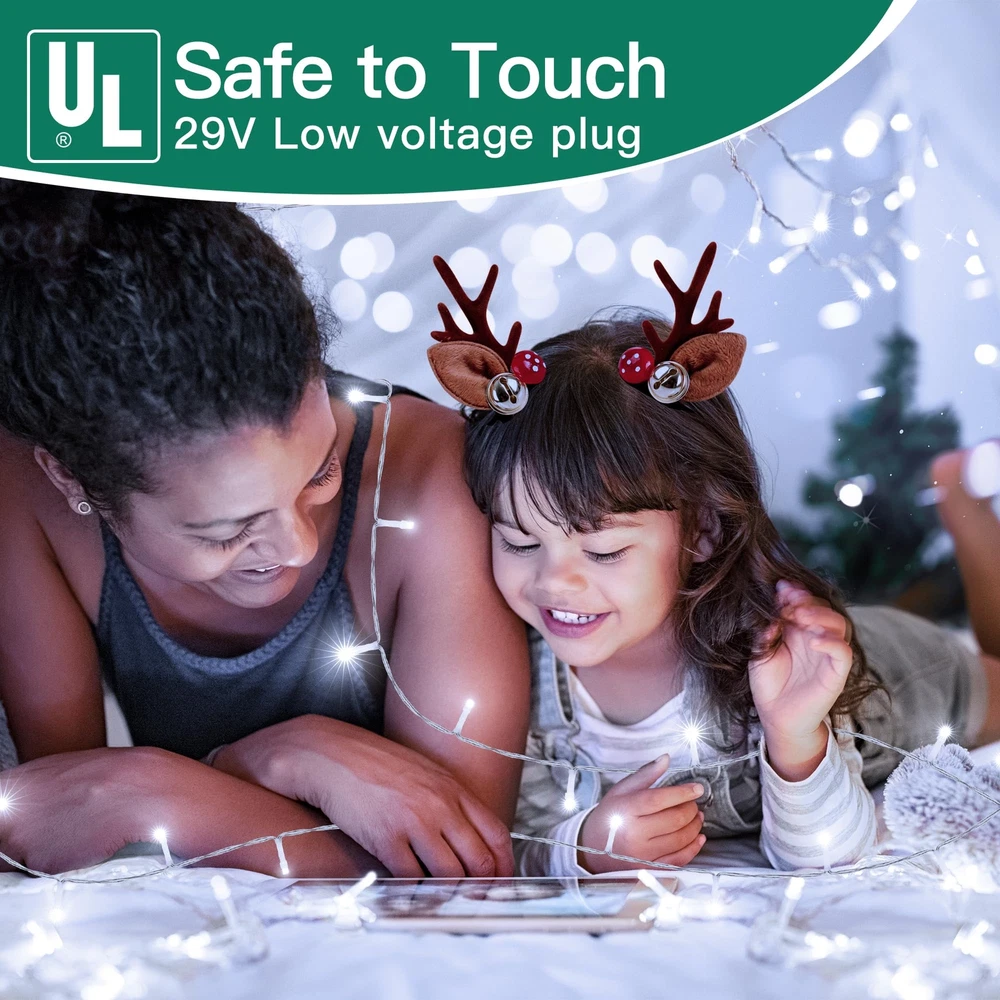 Ultra Long Christmas Lights: 328FT 1000 LED christmas outdoor lights with a 10ft extension cord; enough to decorate every corner of your house, patio, garden, yard, Christmas tree, party, birthday, outside and indoors 8 Modes & 4 Brightness Adjustments: Our Christmas lights have 8 Lighting Modes and 4-level brightness adjustments. Different modes are suitable for various occasions, you can switch them by the remote control or the adapter according to your needs Remote Control & Timer: christmas lights come with a remote control with a time and memory function. You can choose the right timer option that suits your life habits. Lights will auto on/off once set Widely Used: IP44 waterproof design of this Christmas light, 100% protected against solid objects like dust and sand. And fun for your family at Christmas, Thanksgiving, Birthdays, Weddings, and Anniversary Safe & Flexible: Christmas lights have passed the UL588 certification; which enough safe to use. Christmas outdoor light wire made of PVC and copper is durable and flexible, and can be folded and bent arbitrarily, easily builds the shapes you want
