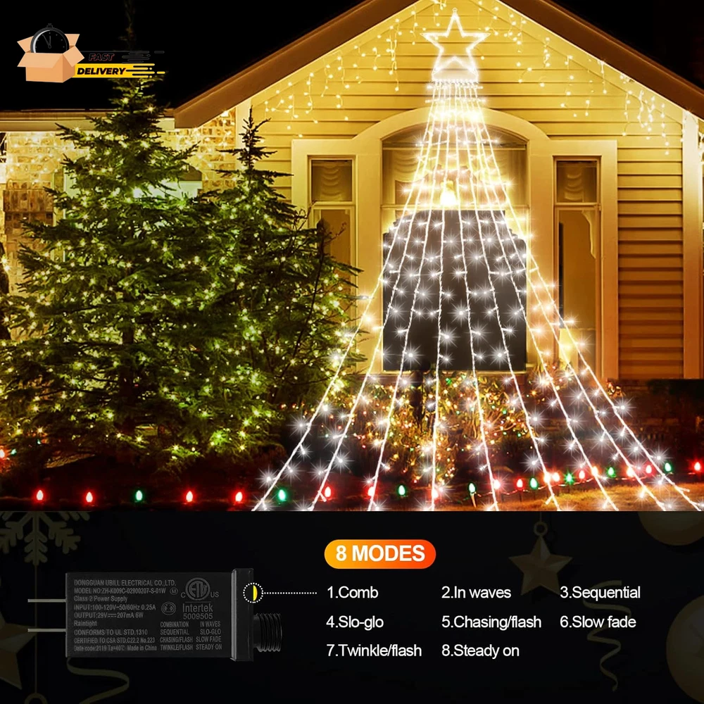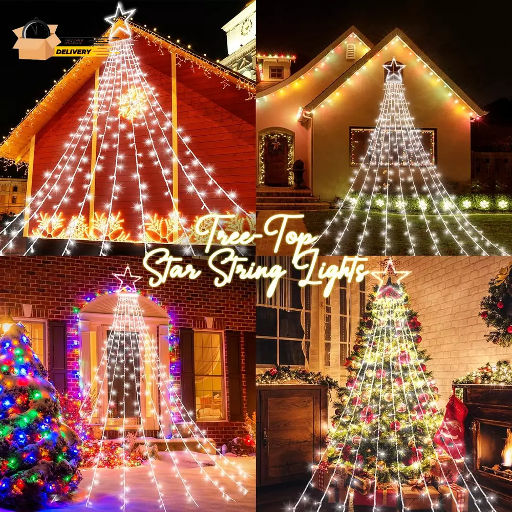 Christmas Lights Outdoor Decorations 344 LED Star Lights Easy to Install Waterpr