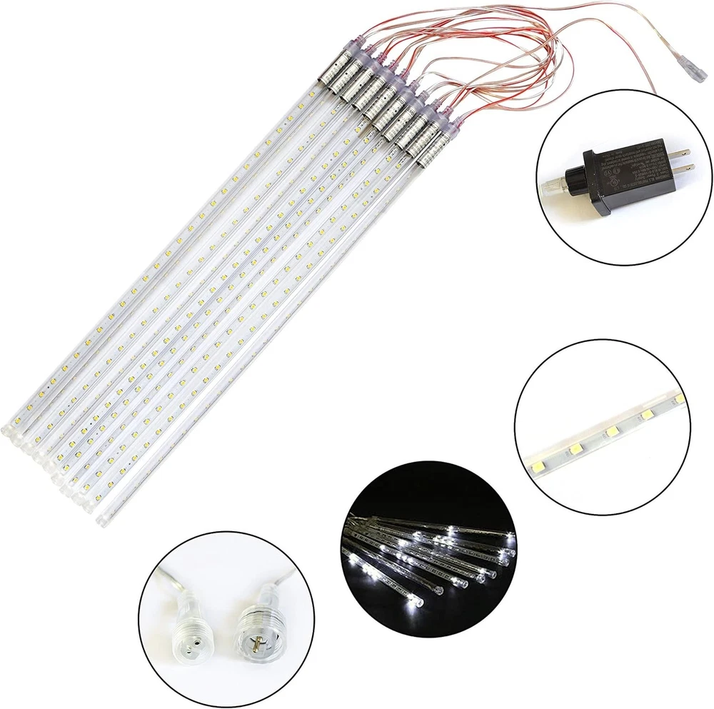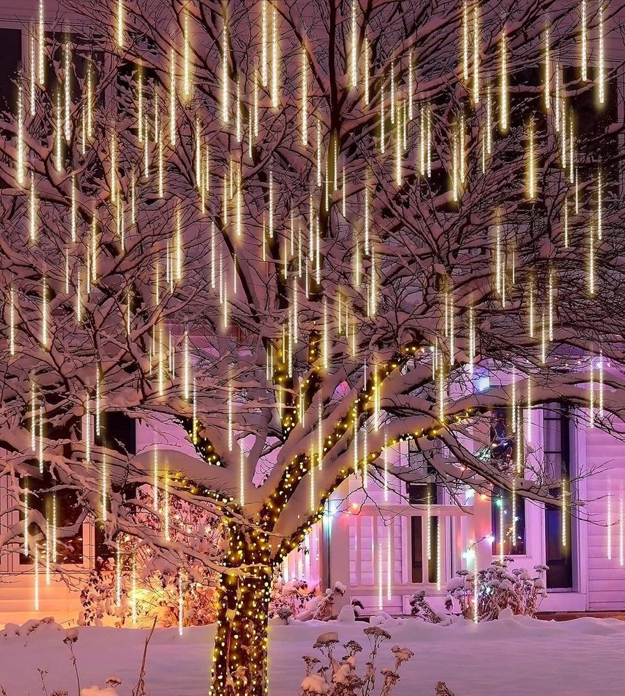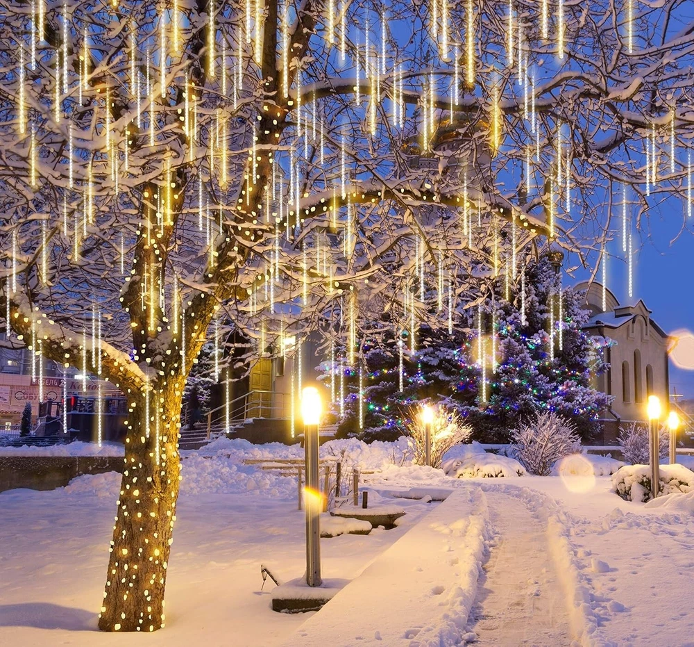 Color Warm White Brand Joiedomi Indoor/Outdoor Usage Outdoor, Indoor Special Feature Waterproof Power Source Corded Electric Light Color Warm White Theme Holiday Occasion Christmas Style Modern Material Polycarbonate About this item PERFECT SIZE. The White LED Meteor Shower Rain Lights have 10 tubes on one strand, each tube is 50cm long, 540 LEDs. EXTENDABLE. Designed with a connector that can connect more than 2 lights together to suit wider occasions. We recommend connecting at most 4 strings to ensure all the lights work well and get the best brightness. PERFECT DECORATION SUPPLIES & WIDE APPLICATION. Each of the outdoor lights fall in sequence then have a slight delay on each tube, just like a meteor shower or falling snow across the night sky, which shows a super beautiful display. They are perfect to decorate trees along street/park/ river, hang along the roof, great for market engineering lighting, urban and architectural beautification. Ideal for patio, yard, garden, hotel hall, shopping mall decoration. PREMIUM QUALITY & WATERPROOF. Made of premium PC material that is transparent, you can see the light glow clearly through the tube. The Christmas light is waterproof, ideal for indoor & outdoor decoration, please protect the plug from the water or heavy raining day. Dustproof, corrosion-resistant, cost resistant, aging resistant, more durable that will last several years using. Safety test approved. CUSTOMER SATISFACTION. Providing a great satisfaction experience is our main priority to our customers. Feel free to message us through “contact seller” if products don't meet your expectations.
