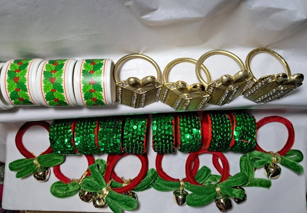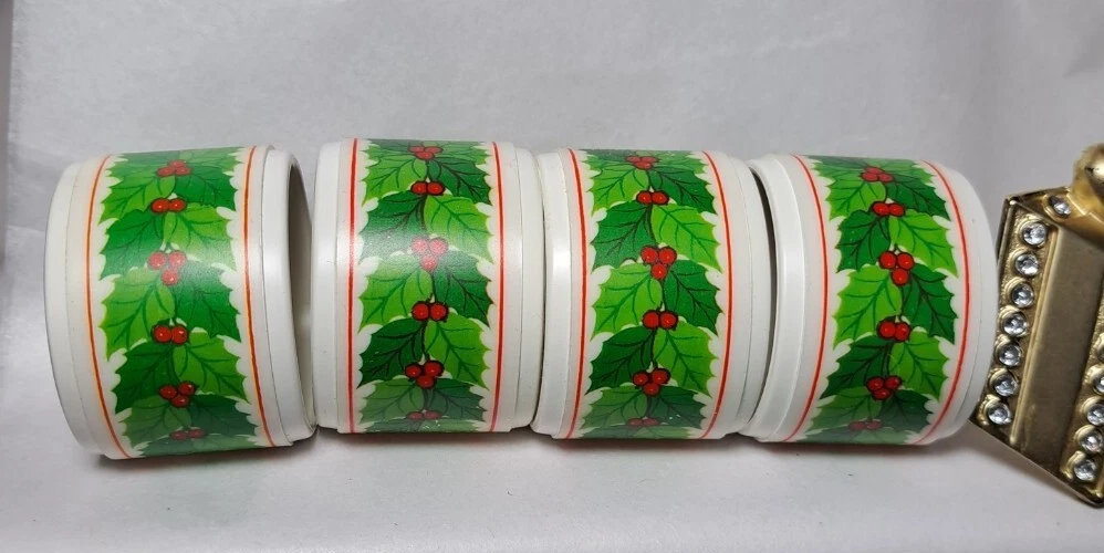 Gifts Sequins Bells Holly Leafs Christmas Napkin Ring Holders Lot Of 24pc I consider this to be in good preowned condition Some scuffs are present Please view all photos zooming in on them as they are part of the description for you to judge condition.