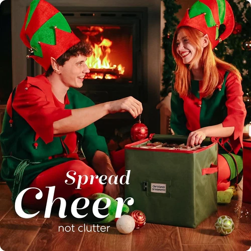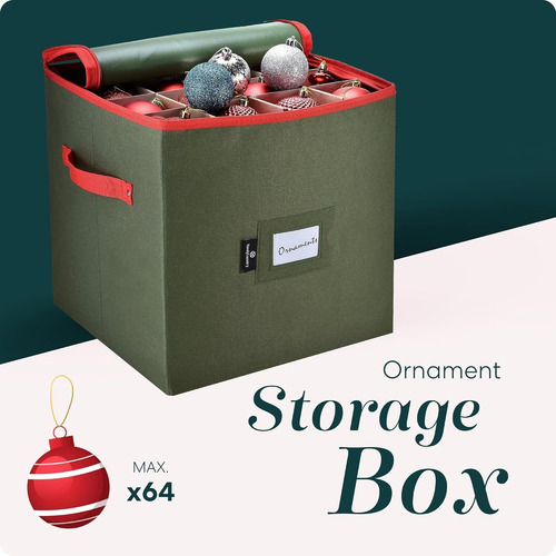 Handy Laundry, Christmas Ornament Storage, Stores up to 64 Holiday Ornament, Adjustable Dividers, Zippered Top, Two Handles Attractive Storage Box Keeps Decorations Clean & Dry for Next Season, Green LuxeFusion Product Description Features SPACE-EFFICIENT STORAGE - This ornament storage organizer compact yet spacious design enables the storage of up to 64 ornaments in a minimal amount of space, making it ideal for homes with limited storage areas. CUSTOMIZABLE STORAGE COMPARTMENTS - Equipped with adjustable dividers, this storage box solution provides a versatile organization system, allowing for the accommodation of ornaments of various sizes and shapes, ensuring each piece is neatly stored and easily accessible. ROBUST AND PROTECTIVE MATERIAL - Constructed with high-quality, durable materials, the product is designed to protect delicate ornaments from dust, moisture, and damage, ensuring they remain in pristine condition year after year. USER-FRIENDLY DESIGN - Featuring a convenient zipper closure and a clear viewing window, this storage system is designed for easy use. Its lightweight yet sturdy structure makes it simple to store and retrieve, enhancing the overall holiday decoration experience. COST-EFFECTIVE SOLUTION - Offering a perfect balance of quality and affordability, this ornament storage holder system is a cost-effective solution for holiday enthusiasts looking to protect their investment in holiday decorations without breaking the bank. Product Details Brand: âHandy Laundry Color: âGreen - 64 Material: âFabric Special Feature: âstackable, customizable, portable, lockable, shatterproof, Adjustable Durable Style: âModern Recommended Uses For Product: âDecorations Product Dimensions: â13"L x 13"W x 13"H Capacity: â64 Liters Closure Type: âZipper Water Resistance Level: âNot Water Resistant Item Weight: â3.9 Pounds Opening Mechanism: âZipper Shape: âRectangular Pattern: âSolid Number of Items: â1 Storage Volume: â64 Liters Number of Compartments: â64 Unit Count: â1 Count Item Package Quantity: â1 Material Feature: âLightweight, flexible, and durable Occasion: âChristmas Manufacturer: âHandy Laundry Part Number: â5099 Item Weight: â3.9 pounds Country of Origin: âChina Item model number: â5099 Is Discontinued By Manufacturer: âNo Size: âZippered-Top Number Of Pieces: â1 Special Features: âstackable, customizable, portable, lockable, shatterproof, Adjustable Durable Batteries Included?: âNo Batteries Required?: âNo Brand: Handy Laundry Color: Green - 64 Material: Fabric Special Feature: stackable, customizable, portable, lockable, shatterproof, Adjustable Durable Style: Modern đ Free Shipping All orders ship free and fast to your doorstep. đ Easy Returns Satisfaction guaranteed. 30-day returns, no questions asked. đŹ 24/7 Support Contact us anytime; weâre here to help, day or night. Brought to you by LuxeFusion â Quality you can trust.