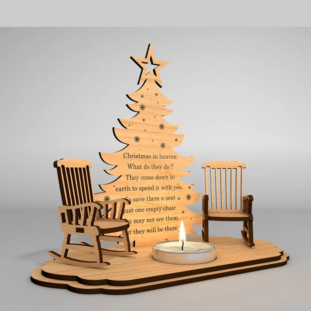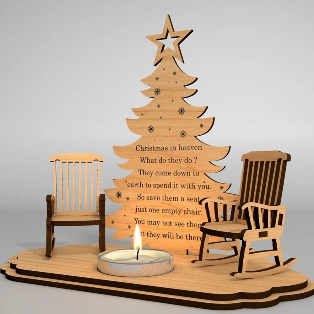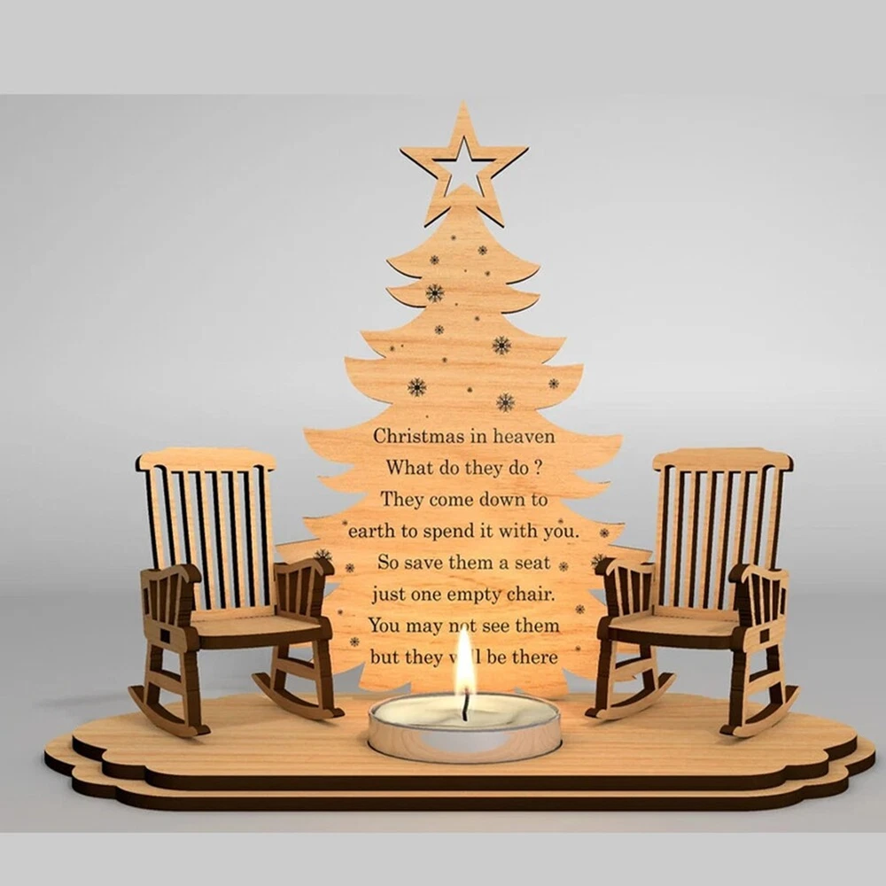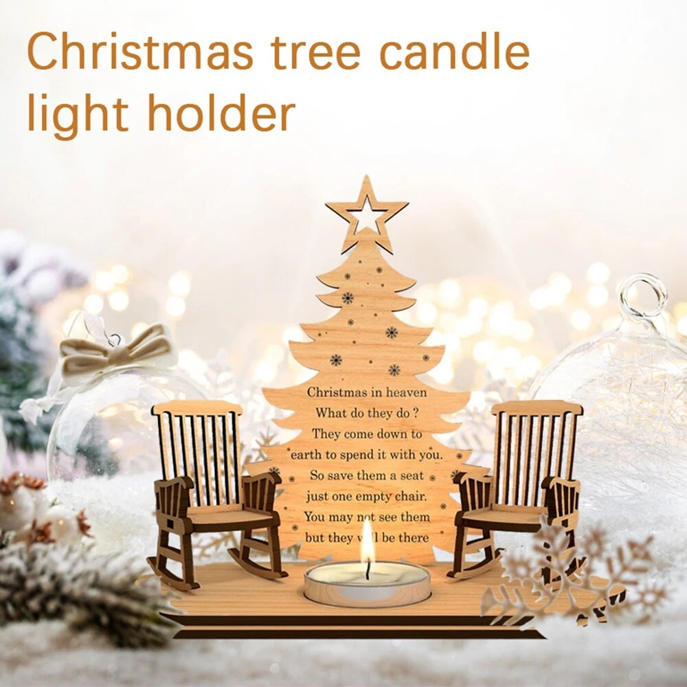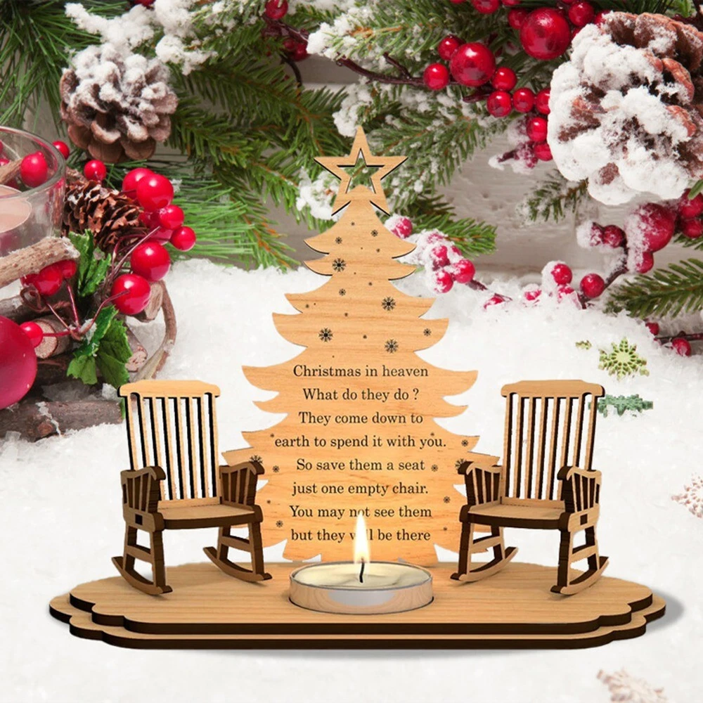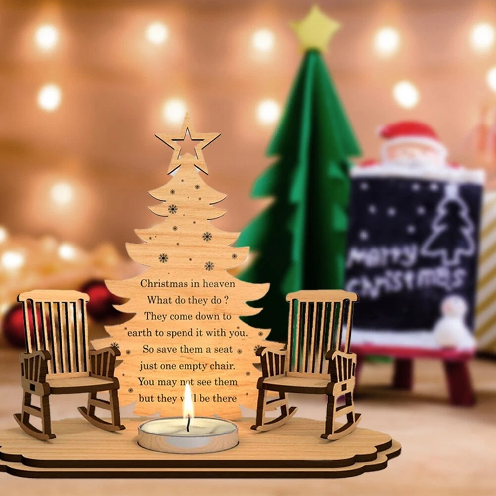 Christmas Remembrance Candle Holder to Remember Loved Wooden Rocking Chair8671 Holiday Candle Holder: Brighten up your holiday season with this charming Christmas tree candle holder, this perfect tabletop decoration will add warmth and light to your space Memorial Keepsake: Remember a loved one during Christmas with this memorial candle decoration, a touching way to those who are no longer with us Heavenly Christmas Memorial: Pay homage to the Christmas spirit in Heaven with this mini wooden rocking chair night light, a meaningful symbol that will keep the memory of a precious one alive during the holiday season Mini Christmas Chair: This mini wooden rocking chair candle holder is a thoughtful and touching decoration that captures the essence of Christmas and is a beautiful tribute to memories of the past Does not contain candles, slight differences between different batches do not affect use Colour:As Shown Material:Wood Package Contents: 1 x Christmas tree candle lamp
