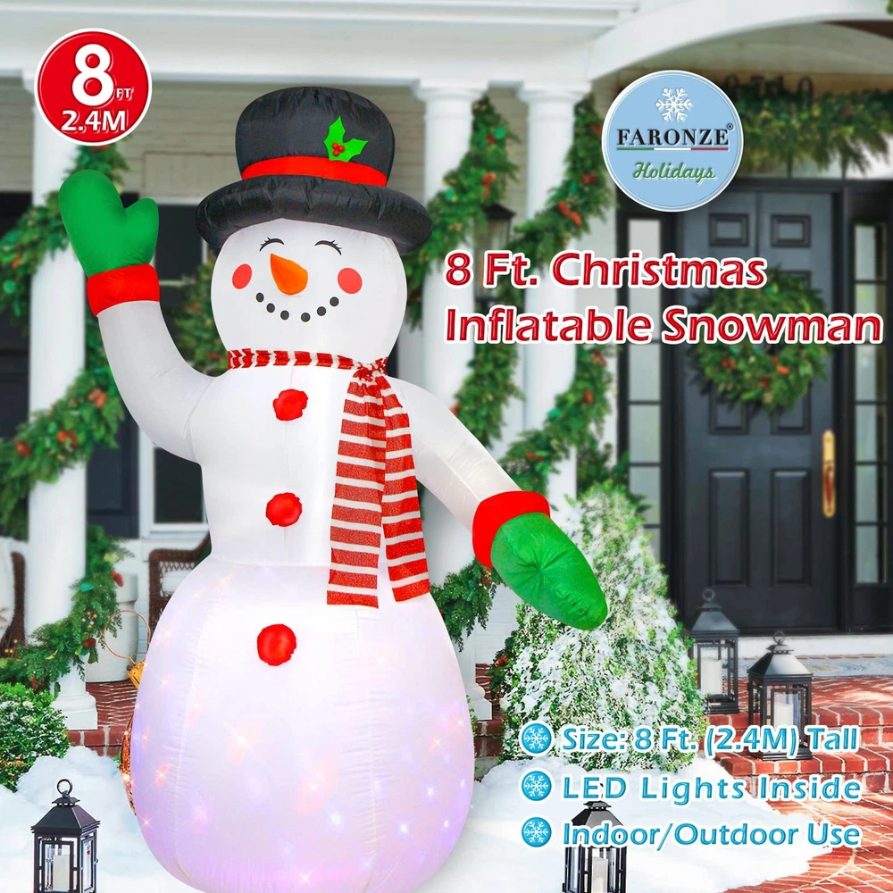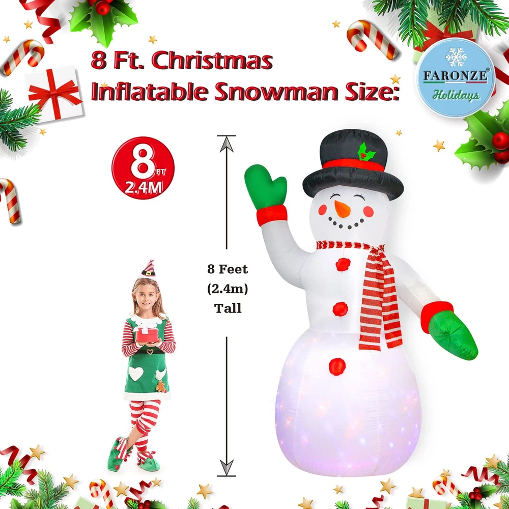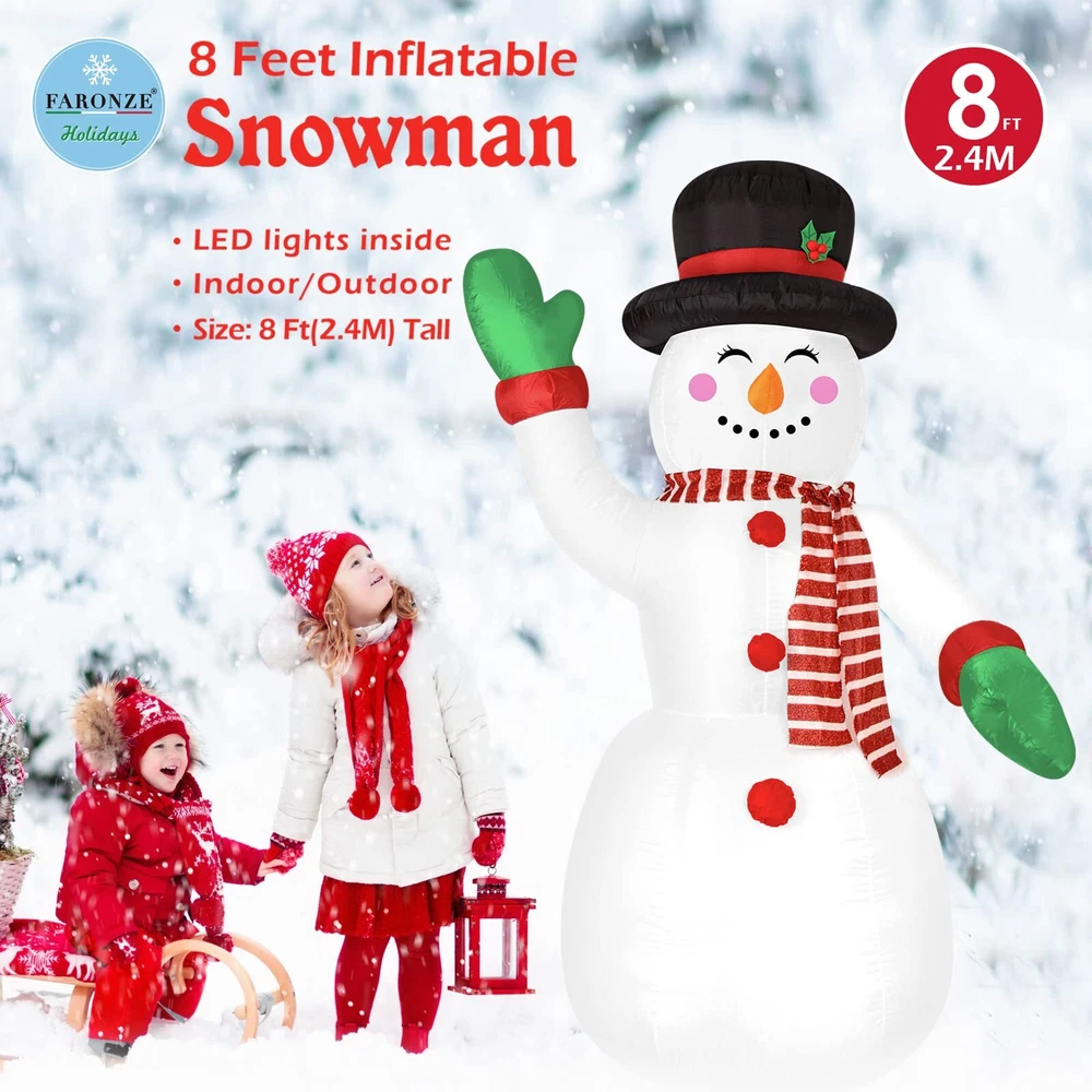 8 feet Inflatable Snowman is the best way to spread cheer this Christmas Season! Featuring inner lights to gently illuminate its effects at night. Our inflatable package includes rope, stakes and powerful blower fan to allow for a quick and easy set up. Christmas can be one of the most memorable Holidays for any child or adult. At we strive to create some of the most magical Christmas lawn inflatables available. Our deluxe 8 feet tall inflatableSnowman will leave any any viewer in awe due to its height, powerful blower, and beautiful inner lights. Our inflatables are built with premium oxford fabric that will endure the elements during its time outdoors. Stands Out- This Snowman inflatable stands at 8 feet tall making it one of the biggest and most attractive inflatable Christmas Holiday decorations around! Illuminates Holiday Cheer- This Snowman inflatable comes with a set of interior lights to illuminate your yard for maximum joy that the whole neighborhood can see and enjoy! Inflates Quickly- Simply attach your blower fan to your Christmas inflatables and plug it in and your inflatable snowman will be ready to spread joy in minutes! Easy To Set Up- Inflatable Snowman includes all you need to set up quickly and easy including yard stakes, blower fan and tether ropes! Great For Any Occasion- Perfect decoration for parties, lawns and festivals! Can be used both indoor and outdoors!