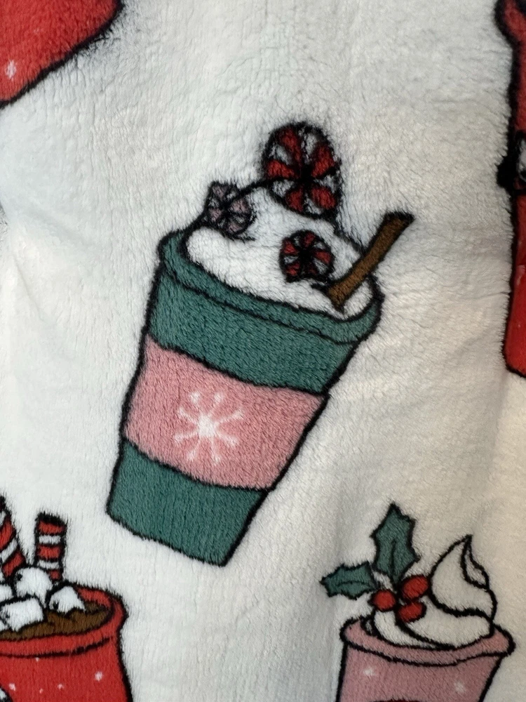 Get cozy this holiday season with this luxurious 60 inch by 70 inch Candy Cane Lane hot chocolate blanket. Perfect for snuggling up in your bedroom, this blanket is made to keep you warm and comfortable. Its soft and gentle material is perfect for those chilly nights, and its 60 inch width ensures that you have enough to share with your loved ones. Whether you're enjoying a cup of hot chocolate or just lounging around, this blanket is the perfect addition to your holiday routine. Its viral Starbucks dupe design is sure to make it a trendy item, and its high-quality construction ensures that it will last for years to come. Get yours today and experience the ultimate in comfort and style this holiday season.