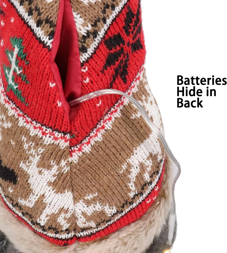 UNIQUE CHRISTMAS TREE TOPPER - This Gnome Designed to be a gnome holding a small Christmas tree in it's hand LIGHTED TREE TOPPER - There is a fairy lights string wrapped around the tiny tree on the hand of gnome. This Christmas tree decoration would be a perfect addition for your Christmas tree GREAT MATERIALS AND HIGH QUALITY - The gnome is made of prime knitted fabrics and non-woven fabric . It's beard is also smooth and good quality. Believe in me, this Christmas tree would be a perfect addition for your Christmas tree UNIVERSAL SIZE - This 14' tall gnome got a 4.7' hole on the bottom. This size fits Christmas tree from 4.5ft to 7.5 ft WORRY-FREE AFTER SALES - You don't need to worry anything about our product. If there is any problem with the product, we promise unconditional refund or replacement Product Description Essential holiday decorations The Christmas holiday decoration gnomes are called "Tots" or "Nisans". Each gnome is carefully stitched together with attention and love. In folklore, gnomes guard homes and protect people from misfortune. A gnome will bring you joy and a good mood, bring comfort and a fairy tale atmosphere to any indoor environment, put it on your table or decorate your Christmas tree to bring luck, happiness and warmth to the family. The Best Christmas Decorations and Gift The Christmas elf has a built-in spring design that can be easily compressed for easy storage. This adorable stuffed dwarf is traditional and the perfect vehicle to spread the holiday spirit. It will be a festive addition to your Christmas tree, table, desk and home decorations.