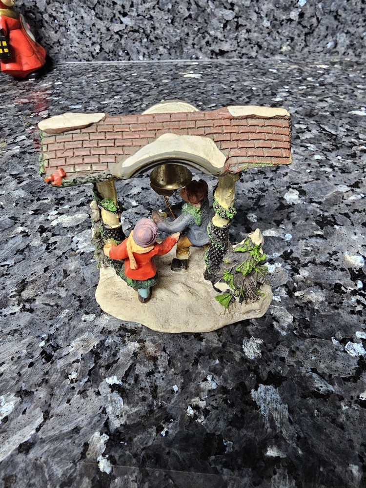 Christmas Village Accessory Children Ringing Bell In Archway and gate Pre-owned see all photos