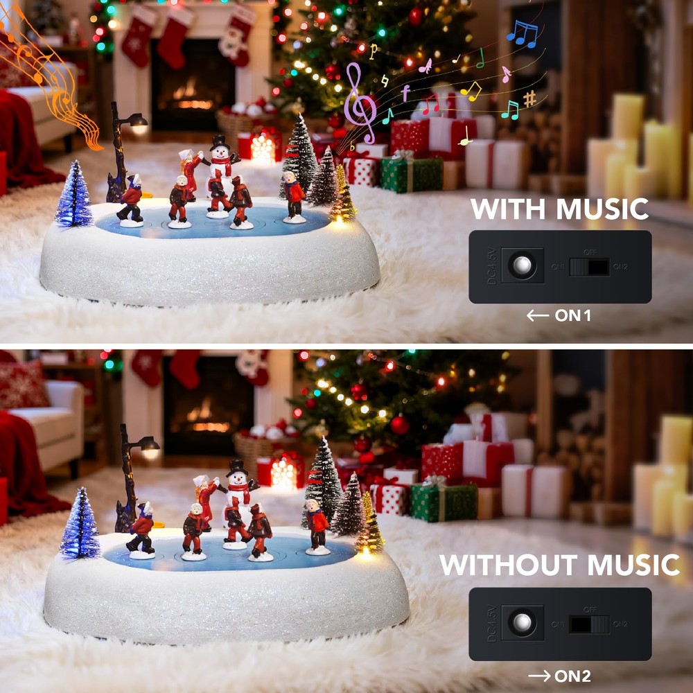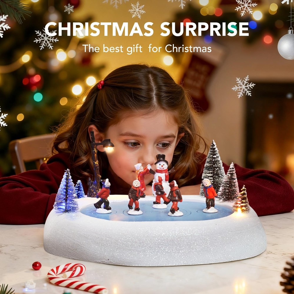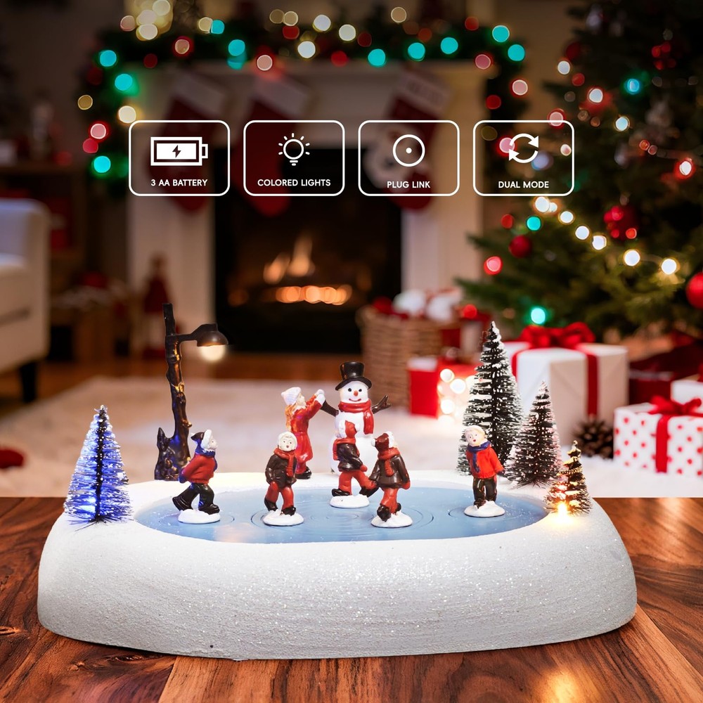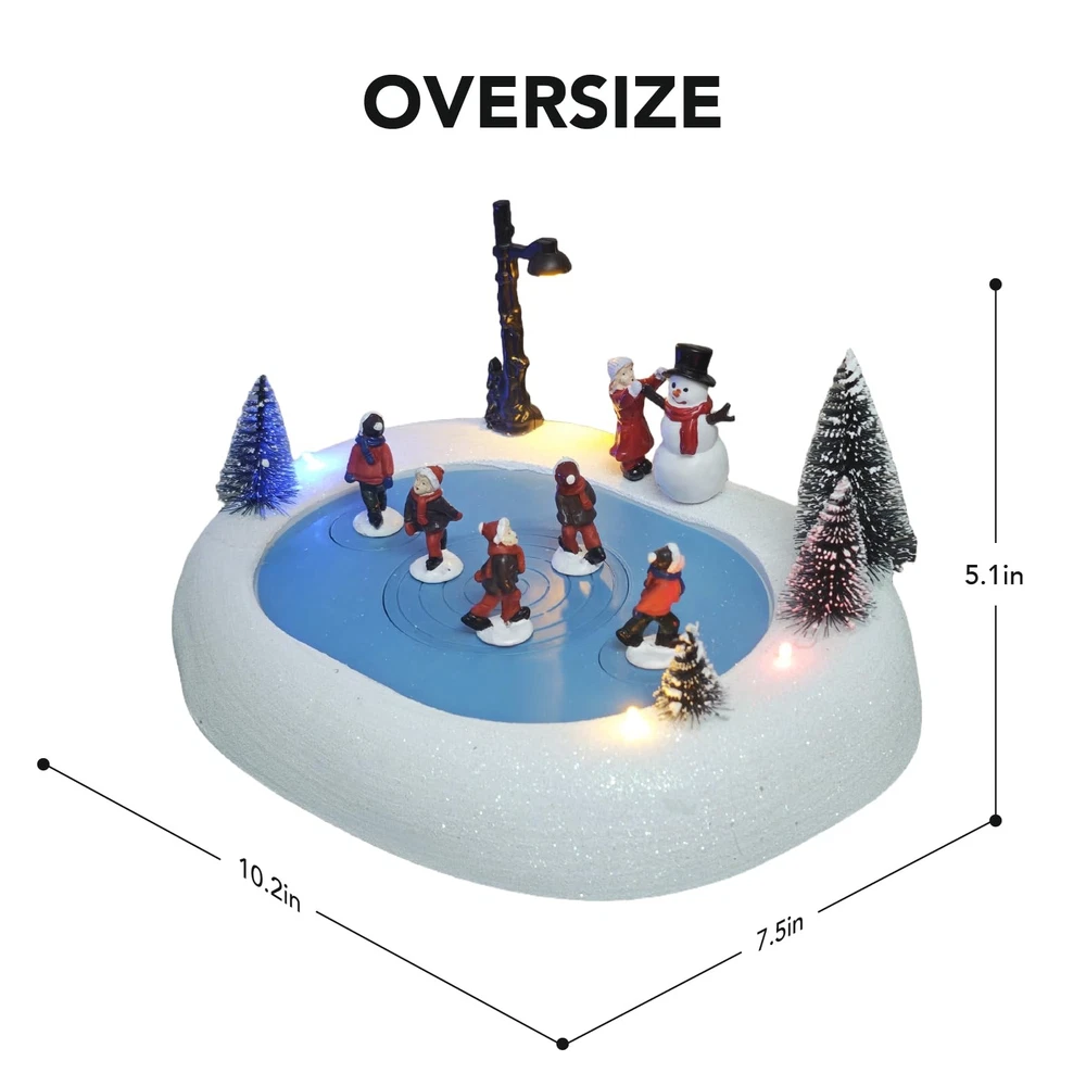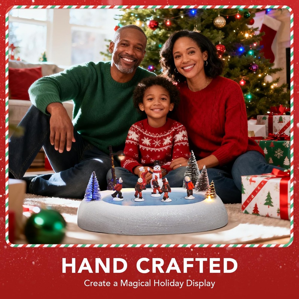 Bring Enchantment to Your Holidays: The Animated Musical Christmas Village Ice Skating Rink! Transform your home into a dazzling winter wonderland with this exquisite handcrafted resin Christmas Village Ice Skating Rink. Meticulously painted and built to last, this premium piece becomes a treasured centerpiece for your Christmas village display year after year. Watch as vibrant, colorful LED lights illuminate the charming, realistic details of skaters gliding on the frozen pond, nestled within a picturesque snow-dusted village scene. The magic deepens with;8 beloved built-in Christmas melodies;(like Jingle Bells and Silent Night!) filling the air, creating a truly joyful and nostalgic atmosphere. Versatile and captivating, it pairs perfectly with any Christmas village collection. Place it as a stunning tabletop focal point, a magical room accent, or as the heart of your indoor Christmas decorations. More than just decor, this animated musical treasure makes an;exceptionally thoughtful and memorable gift, destined to bring wonder and holiday cheer to family and friends. Experience the season's spirit glow! RESIN - This christmas village ice skating rink, meticulously handcrafted and painted from premium resin, offers a lifelike accent for your Christmas village display. Built to last, it will be a treasured part of your Christmas Decorations for years to come SPECIFICATIONS - Featuring five graceful ice skaters gliding on a tree-lined ice pond, enhanced by elegantly shifting colored lights and eight classic Christmas melodies playing on a loop, creating an enchanting atmosphere. Each skater features a fixed, rotating chassis that spinning safely to the music REALISTIC – This Christmas Village Skating Rink, a perfect addition to any Christmas Houses Village, is so realistic that you'll feel like you're in a winter wonderland! Add this Light Up Snow Village to your indoor Christmas Decorations and create a magical holiday display BUILT-IN CHRISTMAS MUSICAL - Our Christmas village accessories come equipped with colorful LED lights that illuminate the charming details of this collectible building; With built-in 8 beloved Christmas music, this enchanting piece creates a joyful atmosphere while delighting presents for the children MAKES A GREAT GIFT - Our exquisite christmas village skating rink is a thoughtful and memorable gift for your loved ones. Whether it's for a family member or friend, our snow village is sure to bring joy and delight to any recipient