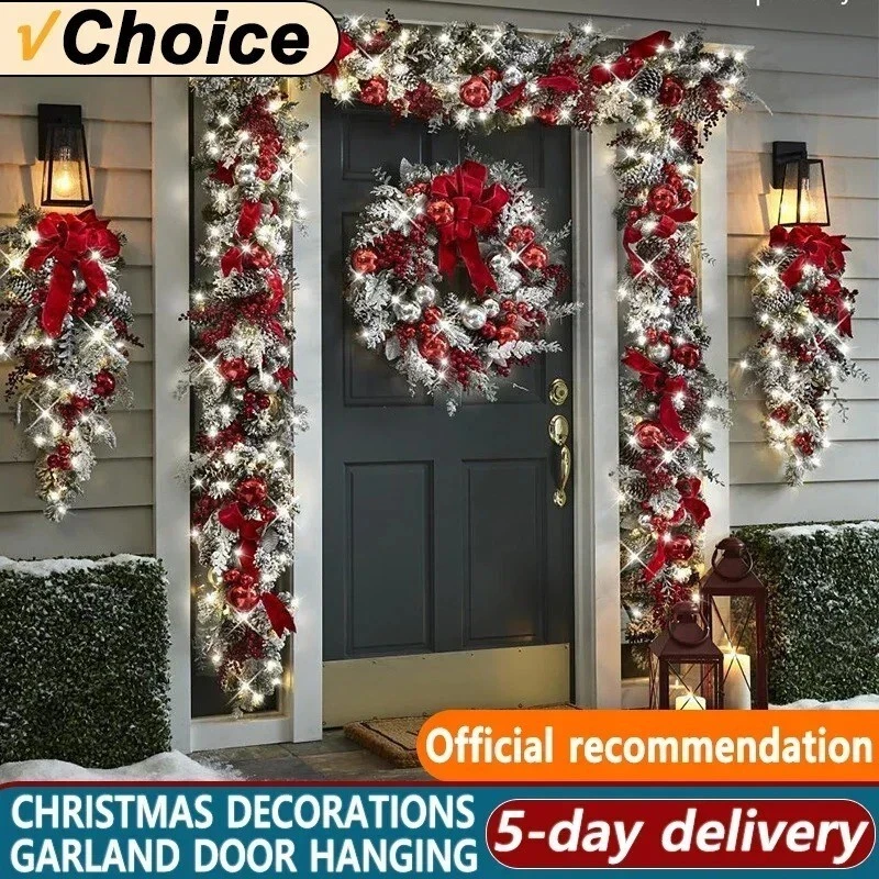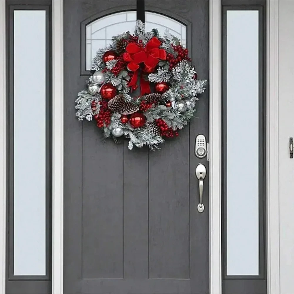 HomeChristmas Wreath Front Door Red Ball Ornaments Window New Mantle Indoor Outdoor