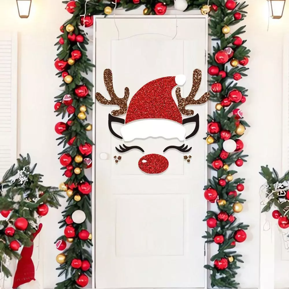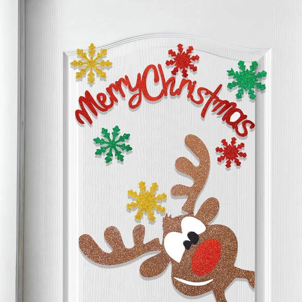 Christmas decoration door stickers elk Christmas tree snowman cartoon felt.