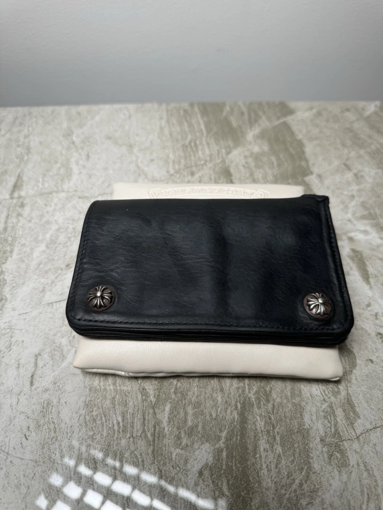 Chrome Hearts Cross Patch Wallet Size: OS Condition: Used Just oiled and cleaned up Rare cross patches Has a wallet chain ring Please message if you want to see more pictures! Ask questions before buying