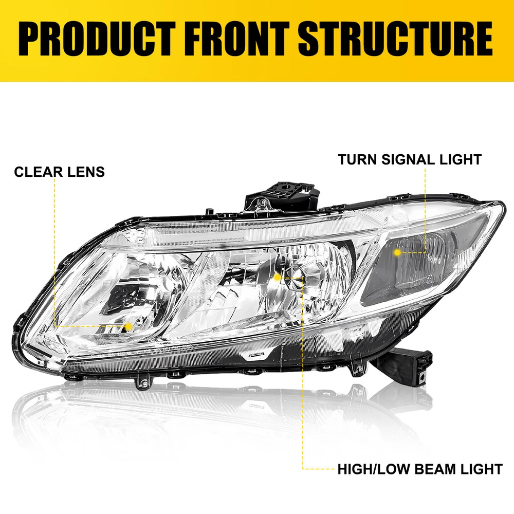 Fit for: 2012-2015 Honda Civic 4Dr Sedan 2012-2013 Honda Civic 2Dr Coupe Specifications: OE number: 33150TR0A01,33400TR0A01,33150TR2A01,331400TR2A01 HO2502144, HO2503144, HO2502150, HO2503150 Material: ABS+PC (ABS Plastic Housing/Polycarbonate lens) Appearance color: 1.Housing Color:Chrome 2.Lens Color:Clear 3.Reflector Color:White Note: Projector ×( Not Include) DRL × (Not Include) Bulb × ( Not include) Features: *Easy to install: Direct replacement, drilling and cutting are not required. Chrome Pair Headlights Assembly Lamp For 2012-2015 Honda Civic Sedan 12-13 Coupe Fit for: 2012-2015 Honda Civic 4Dr Sedan 2012-2013 Honda Civic 2Dr Coupe Specifications: OE number: 33150TR0A01,33400TR0A01,33150TR2A01,331400TR2A01 HO2502144, HO2503144, HO2502150, HO2503150 Material: ABS+PC (ABS Plastic Housing/Polycarbonate lens) Appearance color: 1.Housing Color:Chrome 2.Lens Color:Clear 3.Reflector Color:White Note: Projector ×( Not Include) DRL × (Not Include) Bulb × ( Not include) Features: *Easy to install: Direct replacement, drilling and cutting are not required. *Superior quality: Made of ABS and PC materials with toughness and heat resistance functions to ensure its long service life and durability. *Angle adjustment: Equipped with a headlamp Angle adjustment knob, you can adjust the best Angle of view through the knob. *Suggestion: 1.Please confirm the OE number before purchasing!!! 2.Professional installation is required!!! Packaging include: Headlights*2(Left+Right) Item Specifics Other Part Number HO2502144, HO2503144,HO2502145, HO2503145 High Beam Bulb Type 9005 Bulb (No Included) Bulbs Included No Fitment Type Direct Replacement Items Included Driver Side & Passenger Side Low Beam Bulb Type 9006 Bulb (No Included) Manufacturer Part Number F09W140001 Number of Bulbs 0 Turn Signal Bulb Type 7443 Bulb (No Included) Placement on Vehicle Front Left Right California Prop 65 Warning This product can expose you tochemicals including dehp, which are known to the State of California to cause cancer and birth defects or other reproductive harm. Brand AUXITO Bulb Shape Code 9005;9006 Type Headlight Assembly Interchange Part Number 33150TR0A01,33400TR0A01,33150TR2A01,331400TR2A01 Manufacturer Warranty 1 Year OE/OEM Part Number HO2503144 HO2502150 HO2503150 Housing Color Chrome Fits for 2 For 2012-2013 Honda Civic 2-Door Coupe Features DOT-Certified SAE-Certified Fits for 1 For 2012-2015 Honda Civic 4-Door Sedan Lens Color Clear Lighting Technology Halogen Superseded Part Number 33150TR0A01,33400TR0A01,33150TR2A01,331400TR2A01 Payment Returns DESCRIPTION PAYMENT SHIPPING RETURN POLICY CONTACT US Shop Category Store Home LED Headlight ◈ H4 ◈ H13 LED Reverse Light ◈ T15/921/W16W LED License Plate Light LED Side Marker Light Car Parts & Accessories Tail Light assemblies Other Hot Item Picture New List Item 4PC Smoked Lens LED Front Side Lamp Marker White For 2003-09 Dodge Ram 2500 3500 USD 15.99 Smoked Lens White LED Bumper Rear Side Marker Lights For 1993-2002 Chevy Camaro USD 22.29 Pair Halogen Headlight Set For 2011-2015 Chevrolet Chevy Cruze 4-Door Sedan EOV USD 113.99 For 2016-2018 Honda HRV HR-V Chrome Housing Headlights Assembly Left&Right Pair USD 145.99 For 2015-2020 Chevy Tahoe Suburban [OE Style] LED DRL Headlights Headlamps LH USD 139.99 Help & Info Payment Policy Shipping Policy Return Policy FAQ About Us Chrome Pair Headlights Assembly Lamp For 2012-2015 Honda Civic Sedan 12-13 Coupe Fit for: 2012-2015 Honda Civic 4Dr Sedan 2012-2013 Honda Civic 2Dr Coupe Specifications: OE number: 33150TR0A01,33400TR0A01,33150TR2A01,331400TR2A01 HO2502144, HO2503144, HO2502150, HO2503150 Material: ABS+PC (ABS Plastic Housing/Polycarbonate lens) Appearance color: 1.Housing Color:Chrome 2.Lens Color:Clear 3.Reflector Color:White Note: Projector ×( Not Include) DRL × (Not Include) Bulb × ( Not include) Features: *Easy to install: Direct replacement, drilling and cutting are not required. *Superior quality: Made of ABS and PC materials with toughness and heat resistance functions to ensure its long service life and durability. *Angle adjustment: Equipped with a headlamp Angle adjustment knob, you can adjust the best Angle of view through the knob. *Suggestion: 1.Please confirm the OE number before purchasing!!! 2.Professional installation is required!!! Packaging include: Headlights*2(Left+Right) Payment Returns All rights reserved. On Dec 17, 2024 at 12:03:06 PST, seller added the following information: