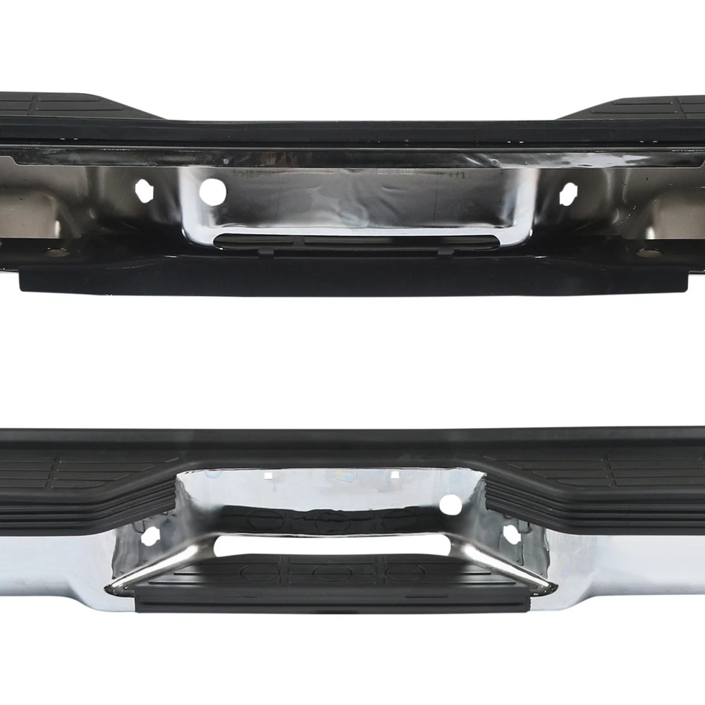 FITMENT Chevrolet 1988-1998 C1500 1988-1998 K1500 GMC 1988-1999 C1500 1988-1999 K1500 SPECIFICATION Color:Chrome & Black Finish:Polished Chrome Placement on Vehicle:Rear INCLUDE Step Bumper Black Pad(s), Bolt Kit License Plate Lights Bracket(s),