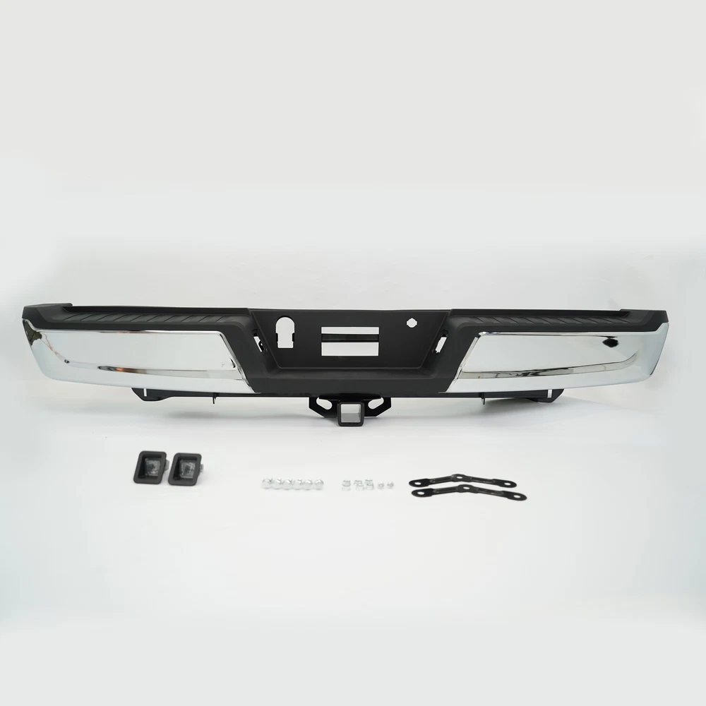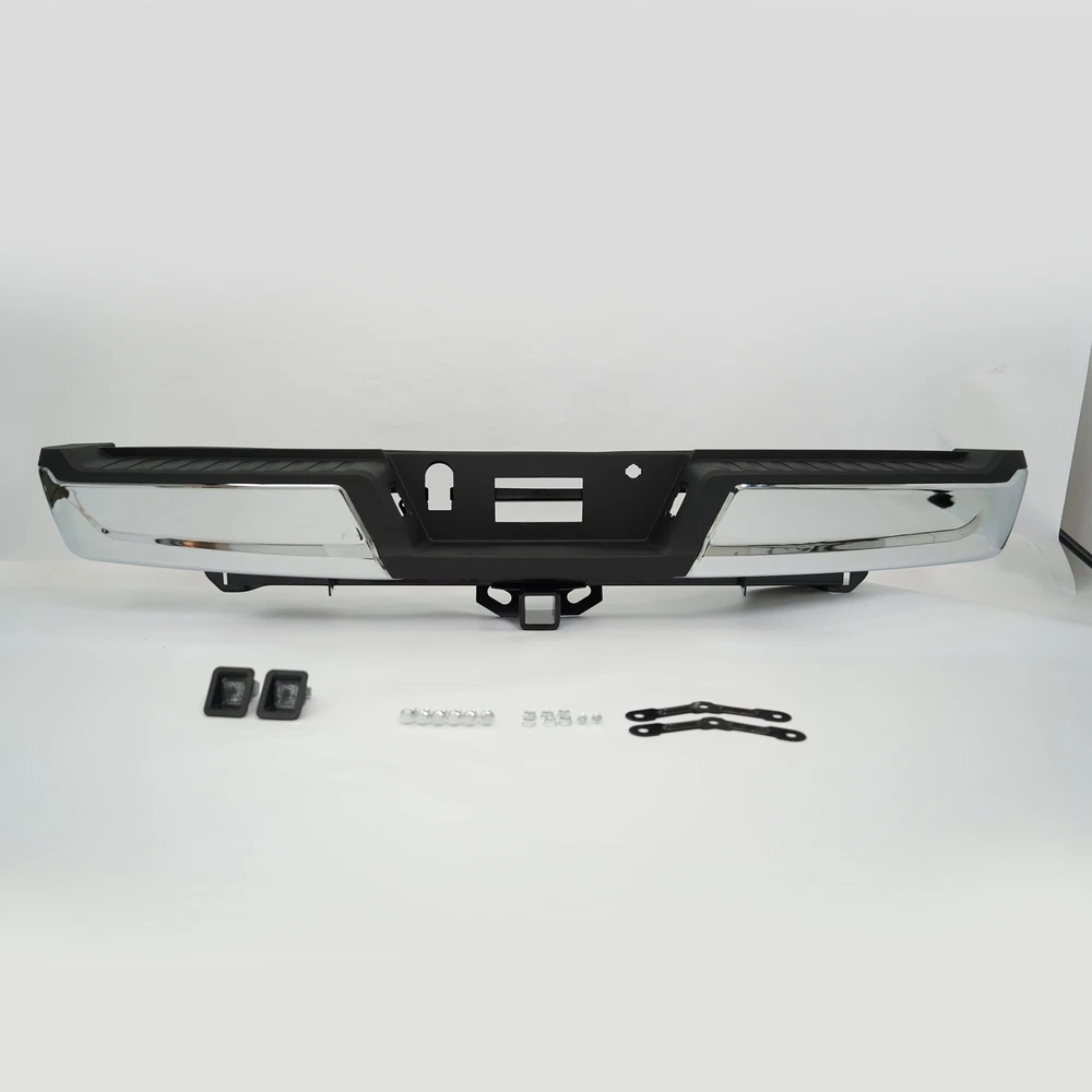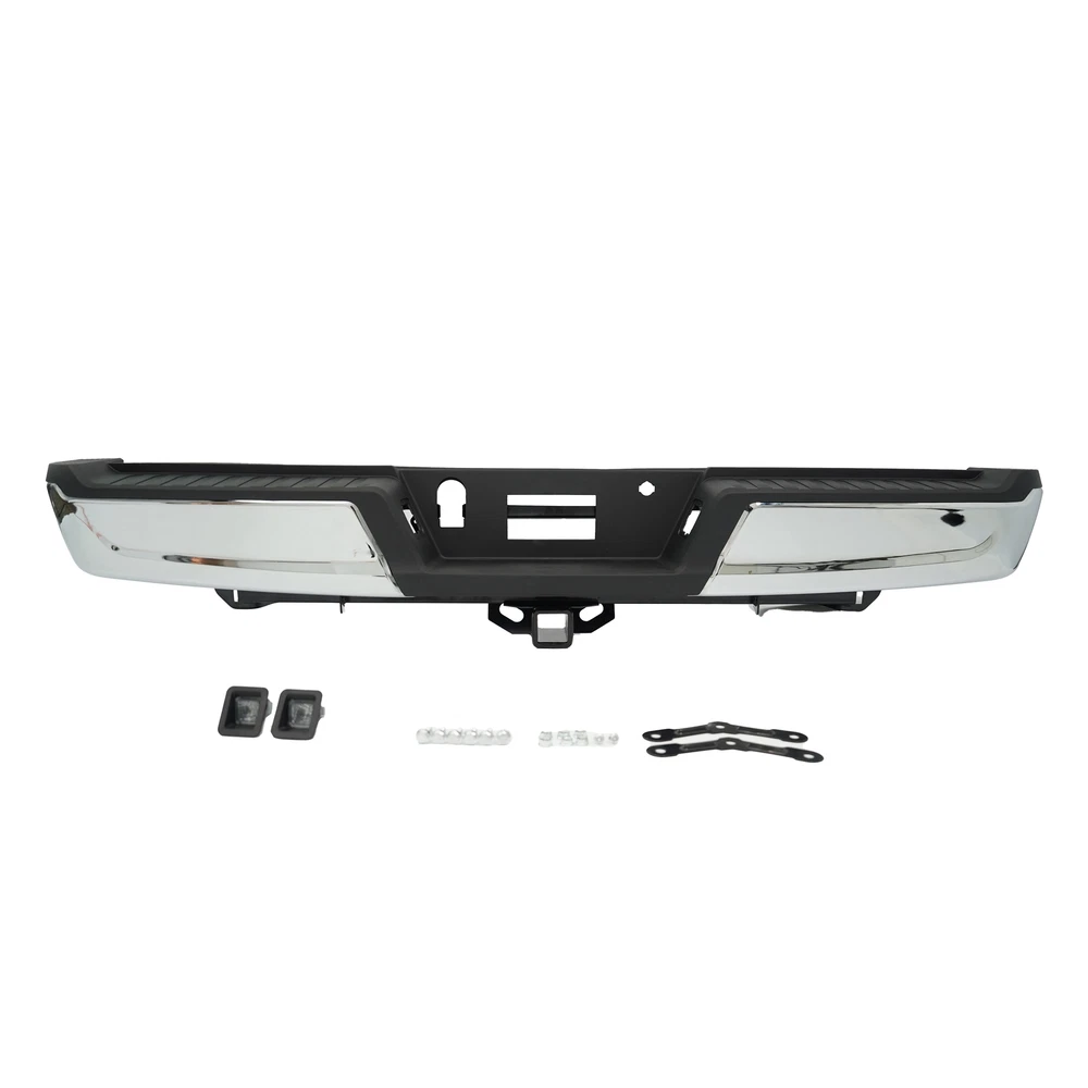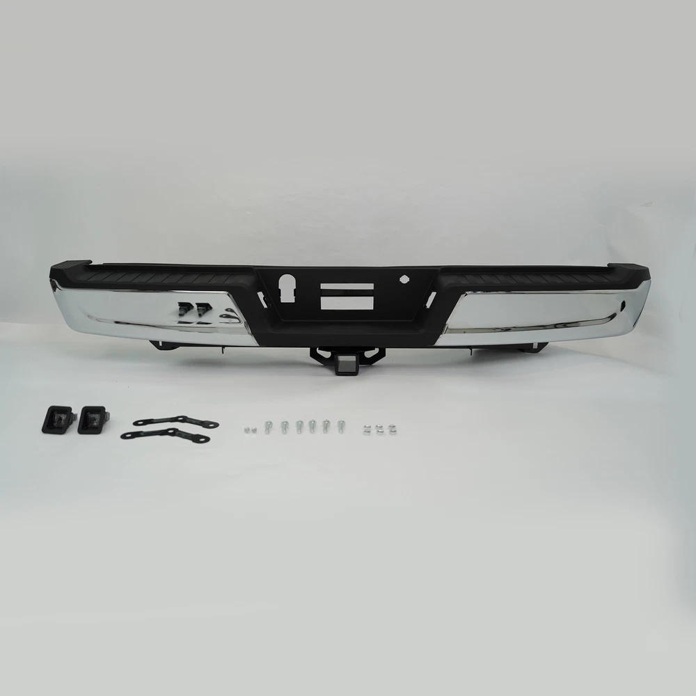 Fitment 2021-2023 Ford F-150 For Models Without Park Sensors For Models With Tow Package Details Placement on Vehicle:Rear Color:Chrome Material:Steel Package Includes: 1*Rear Bumper Assembly On Nov 28, 2024 at 04:40:44 PST, seller added the following information: On Nov 28, 2024 at 23:19:03 PST, seller added the following information: On Dec 8, 2024 at 17:52:19 PST, seller added the following information: On Dec 8, 2024 at 22:09:05 PST, seller added the following information: