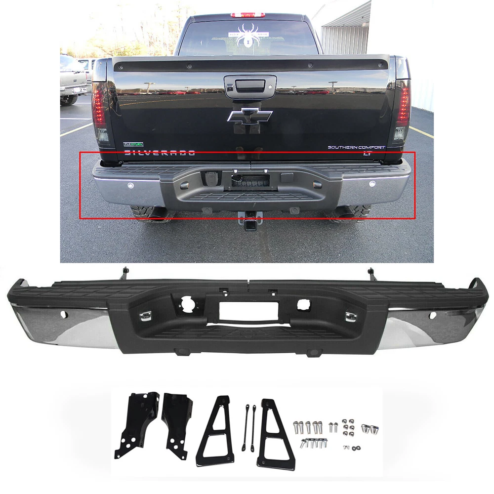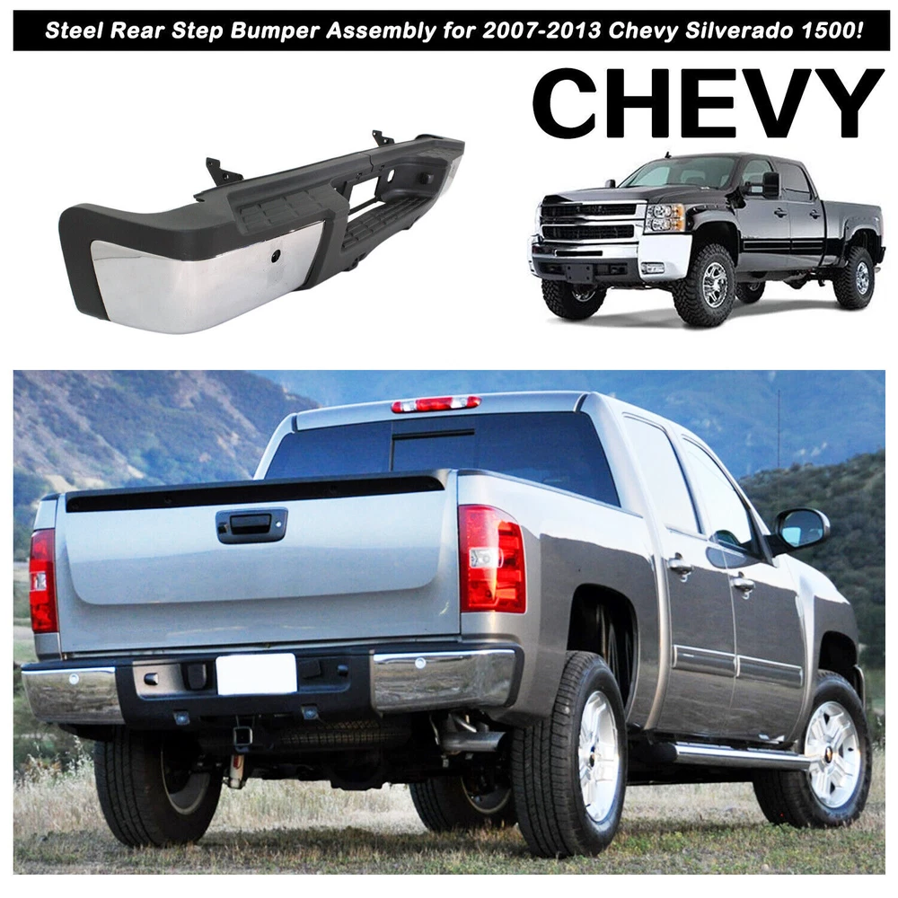 Feature Condition: 100% Brand New Material: Steel Color: Chrome+Black Surface Finish: Chrome Placement on Vehicle: Rear Number of package: 2 Replecement Number for: GM1103148 20899360-PFM With License Plate Lights Note:The picture shows the mounting bracket already installed on the bumper Fits For 2007-2013 Chevy Silverado 3500HD For 2007-2013 GMC Sierra 3500HD For 2007-2013 Chevy Silverado 1500 For 2007-2013 GMC Sierra 1500 Package Include 1x Rear Step Bumper Assembly
