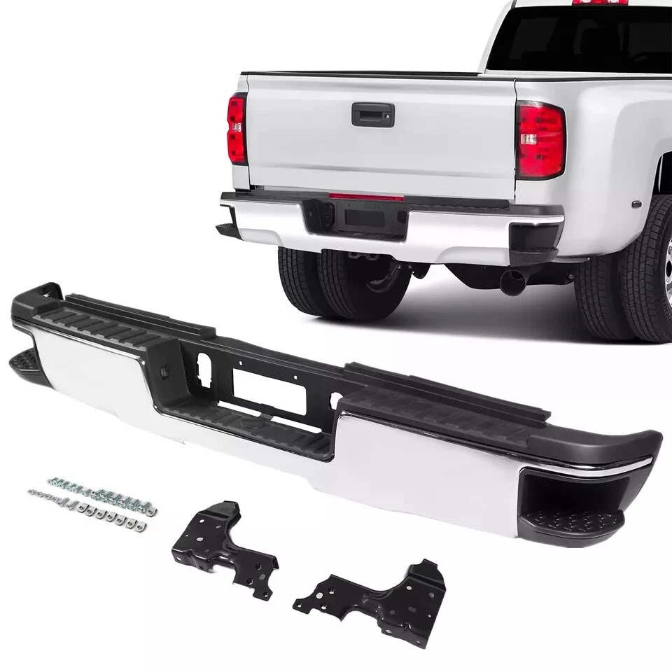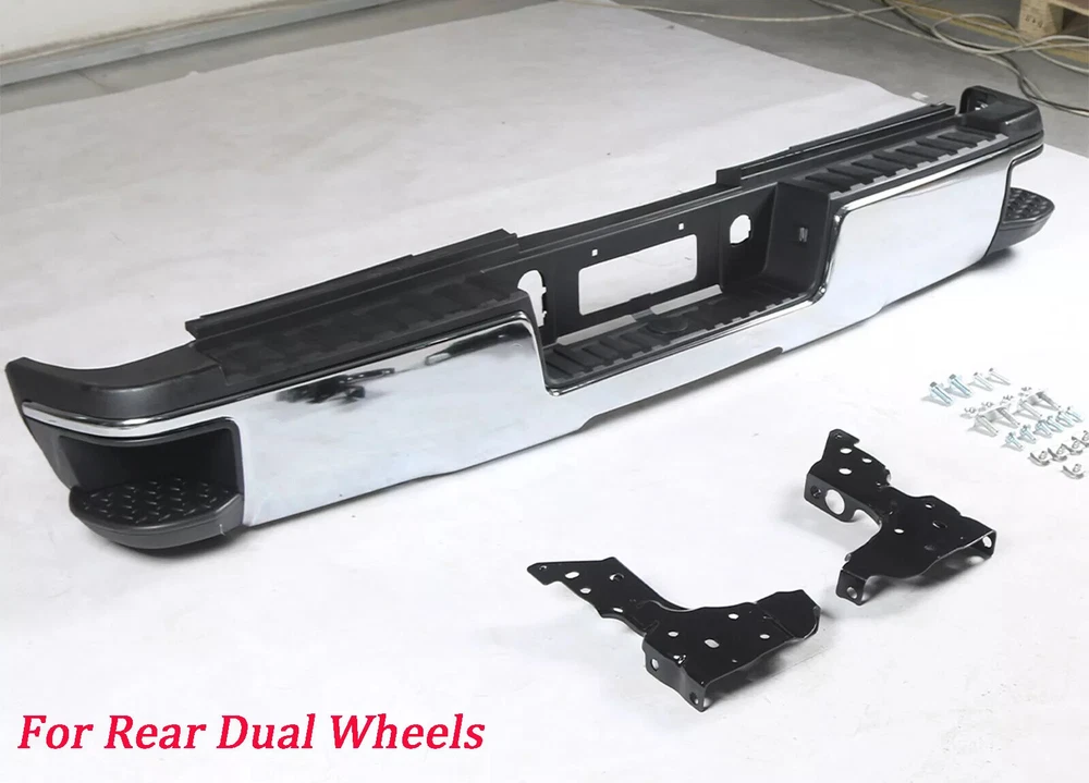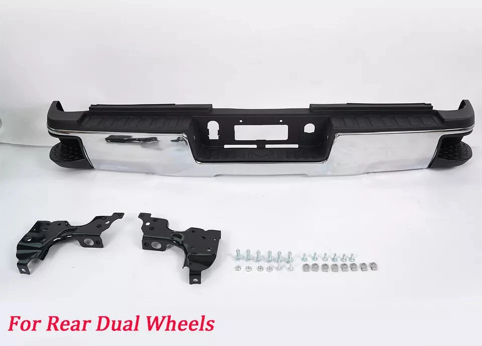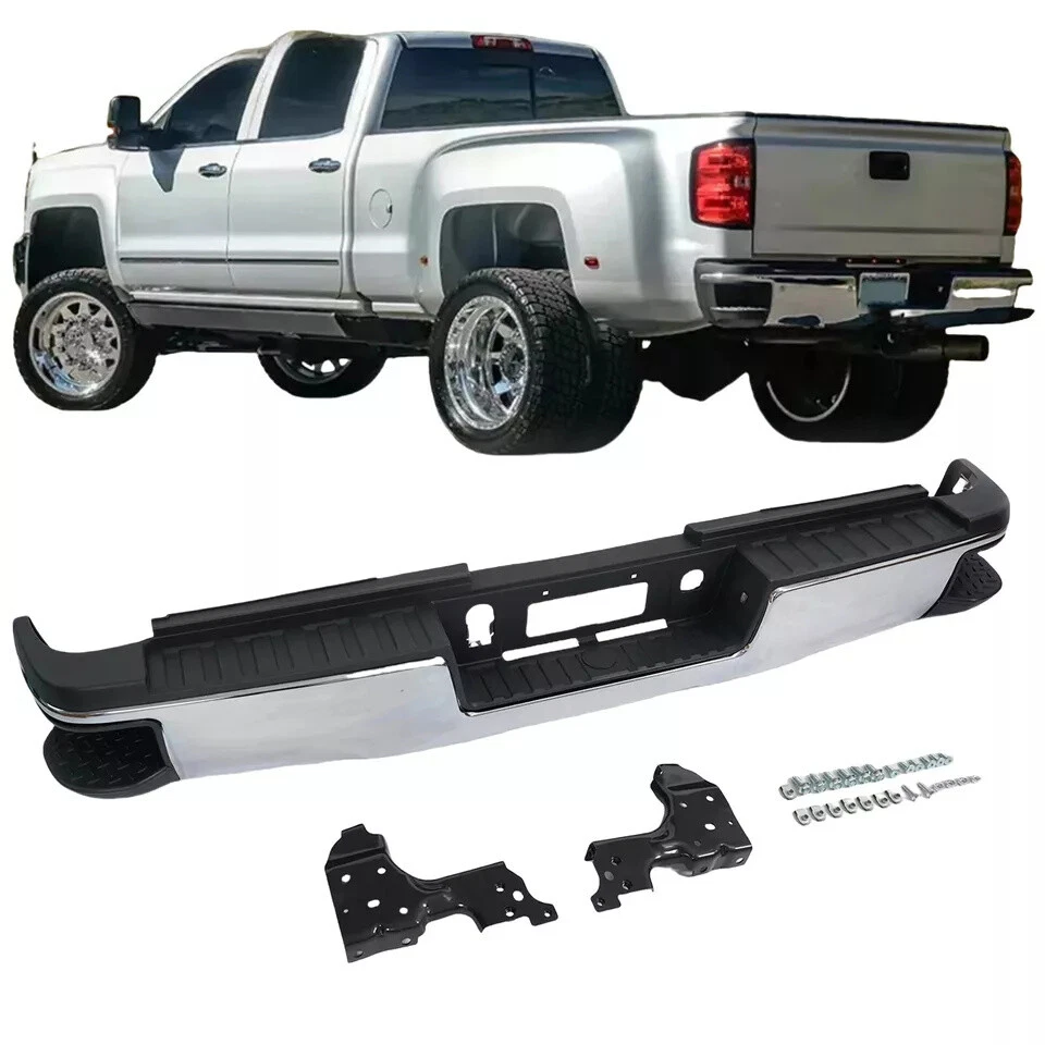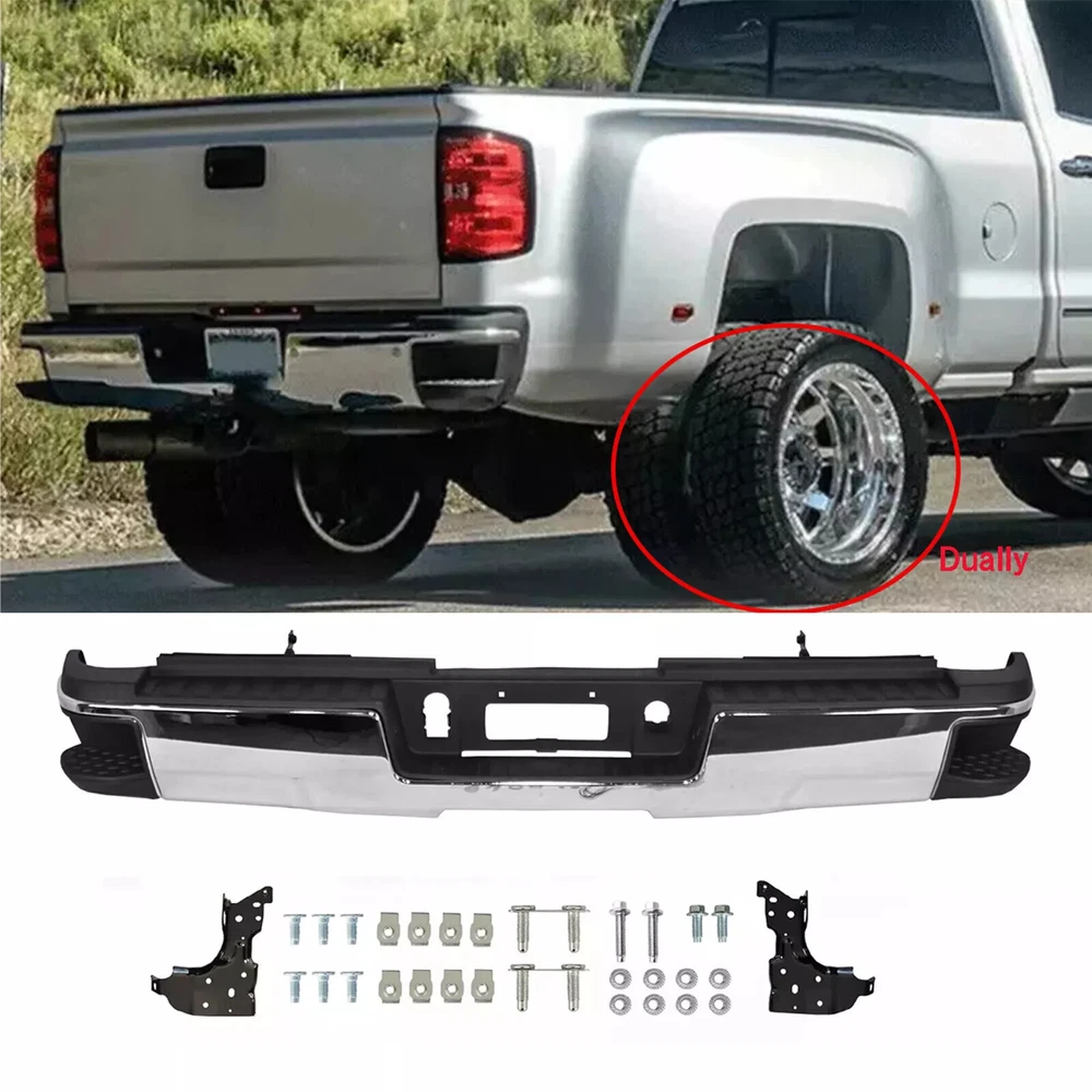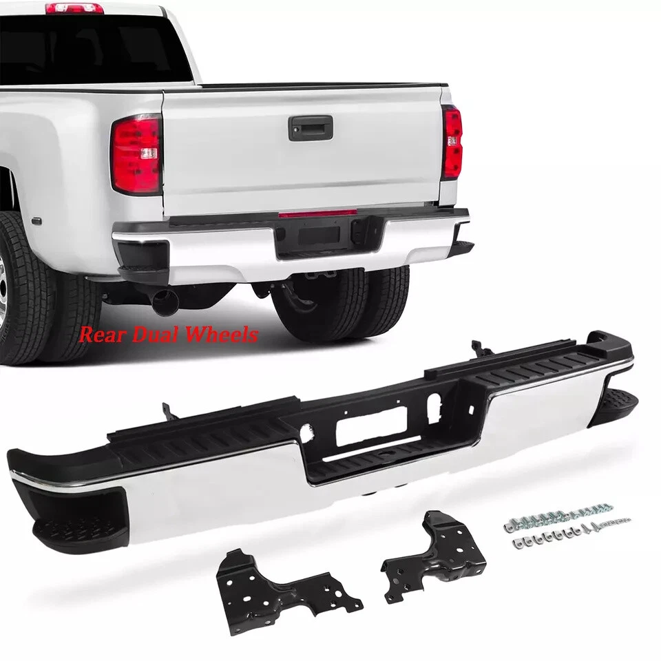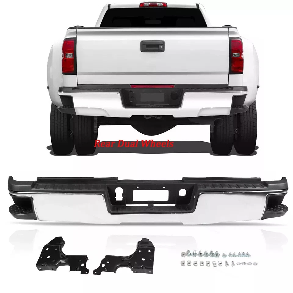 Fitment 2015-2019 Chevrolet Silverado 2500 HD 2015-2019 Chevrolet Silverado 3500 HD 2015-2019 GMC Sierra 2500 HD 2015-2019 GMC Sierra 3500 HD For Dual Rear Wheel (Dually) Models ONLY For Models Without Park Sensors For Use With Factory Tow Hitch (Hitch Plate Not Included) Details Surface Finish:Chrome Material:Steel Includes Reinforcement, Brackets, Hardware, Lamps and Step Pad Direct OE Replacement Package Includes: 1*Rear Bumper Assembly On Dec 12, 2024 at 17:05:25 PST, seller added the following information: On Dec 18, 2024 at 18:21:58 PST, seller added the following information: On Dec 19, 2024 at 09:45:51 PST, seller added the following information: