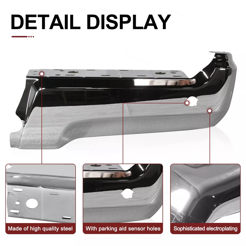 Condition: 100% brand new and high quality Type: Rear Bumper Face Bar Ends Interchange Part Number:FO1102387 OE/OEM Part Number:190-02231A, HC3Z17906KA Material: Steel Placement on Vehicle: Right, Rear Color: Chrome Fitment Type: Direct Replacement Surface Finish: Chrome Steel Fitment: Fits for 2017-2022 Ford F250 F350 Super Duty. For Models with Park Assist only Package Included: 1 x Rear Bumper End (Passenger Side) On Dec 13, 2024 at 01:21:41 PST, seller added the following information: On Dec 16, 2024 at 17:31:27 PST, seller added the following information: