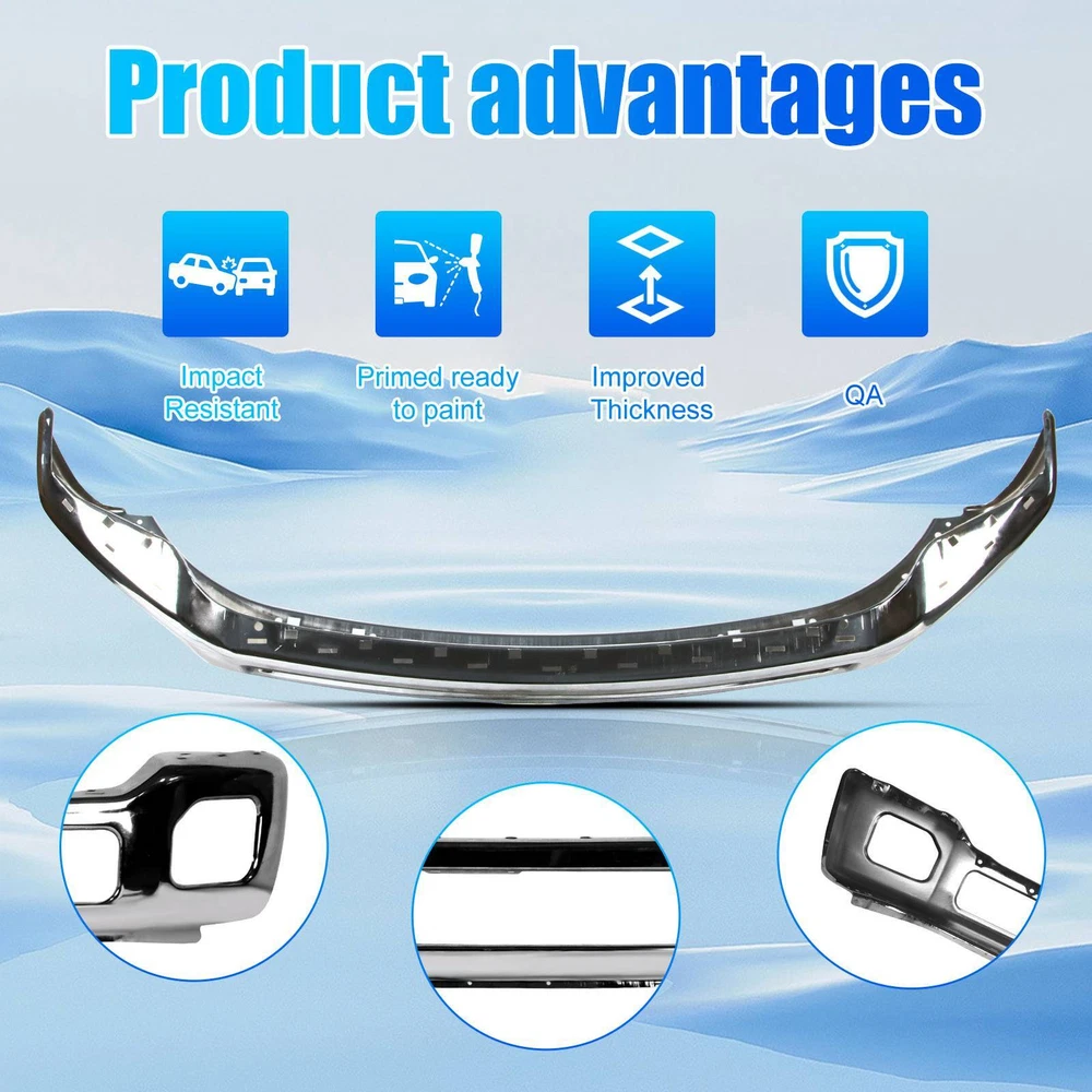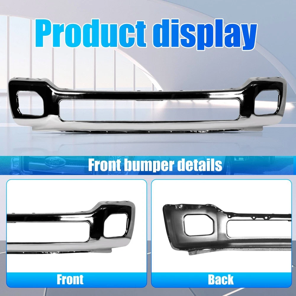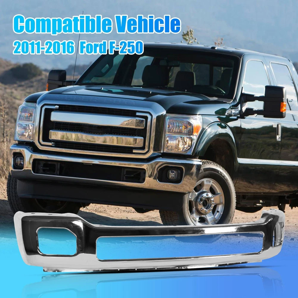 Specification Color: Chrome Air Intakes: YES Finish: Chrome Installation Instruction: Not Included Manufacturer Warranty: 1 Year Condition: New Items Included: Face Bar Interchange Part Number: FO1002416 OE/OEM Part Number: BC3Z17757B Fitment Type: Vehicle Specific Placement on Vehicle: Front Type: Front Bumper Material: Steel Fog light holes: WITH FOG LIGHT HOLES Fitment 2011-2016 Ford F-350 Super Duty 2011-2016 Ford F-250 Super Duty Features & Benefits 1. Solid Construction Design - Made of heavy-duty steel and high grade PP to ensure an extremely long-lasting performance in outdoor conditions. 2. OEM Characteristic - Made to exact factory specifications and designed specifically for your vehicle for optimal convenience and functionality. 3. Quick and Easy to install - OE fitment and replacement for factory unit, fast installation without any drilling or modification. Instruction is not included. Professional installation is highly recommended. 4. SUV/Car/Truck front bumpers protect your car from rocks, tree roots and other obstacles. Save your a big fix fee in the body shop. Note: Only sold in the USA (Excluding Hawaii, Alaska, Puerto Rico, Guam, Virgin Islands, American Samoa, Northern Mariana Islands, Palau, Federated States of Micronesia, Marshall Islands, AA, AE, AP). Warranty: If there's any problem, please feel free to contact us with your car's VIN # and the pictures or videos to show the problem within 30 days, we’ll try our best to solve it and make you satisfied. After using, the item’s warranty is 1 year, only for replacement and no refund. Hope you know.