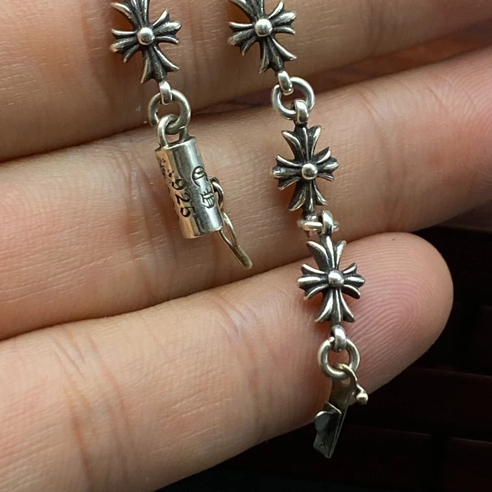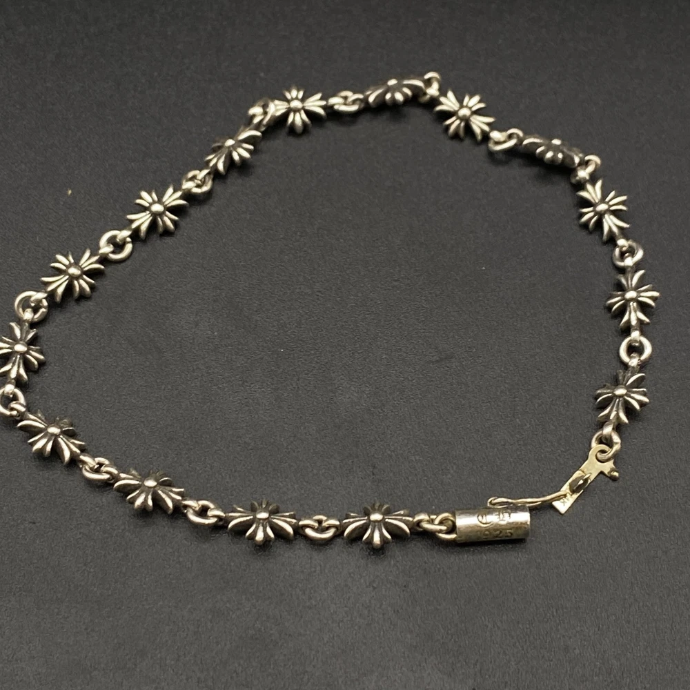 Chrome Hearts 925 Silver Cross Flower bracelet 14K gold Length 21cm No boxes or dust bags