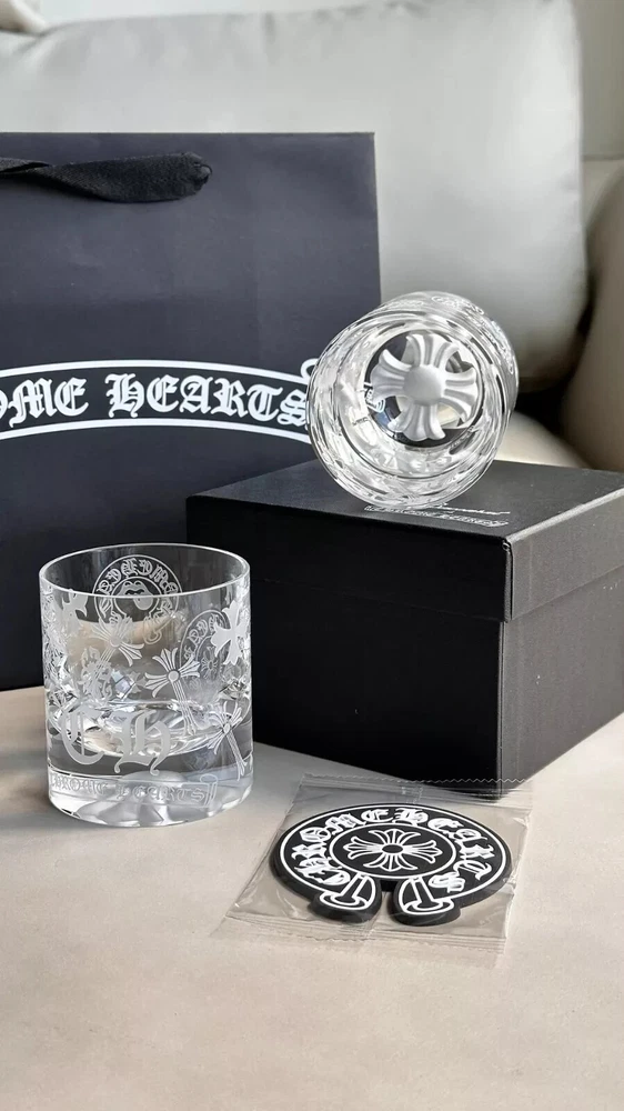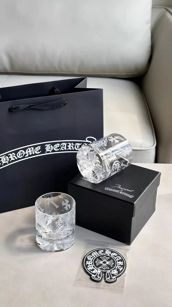Chrome hearts crystal whiskey glass No box Set of two (2) pieces/unused Crystal X Chrome Heart whiskey glasses,