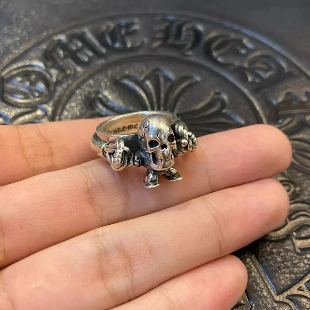 Chrome hearts sterling silver skull ring Size 6.5
