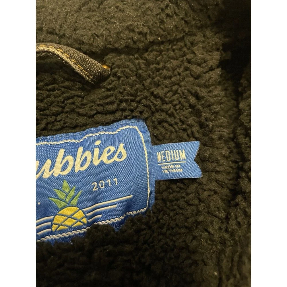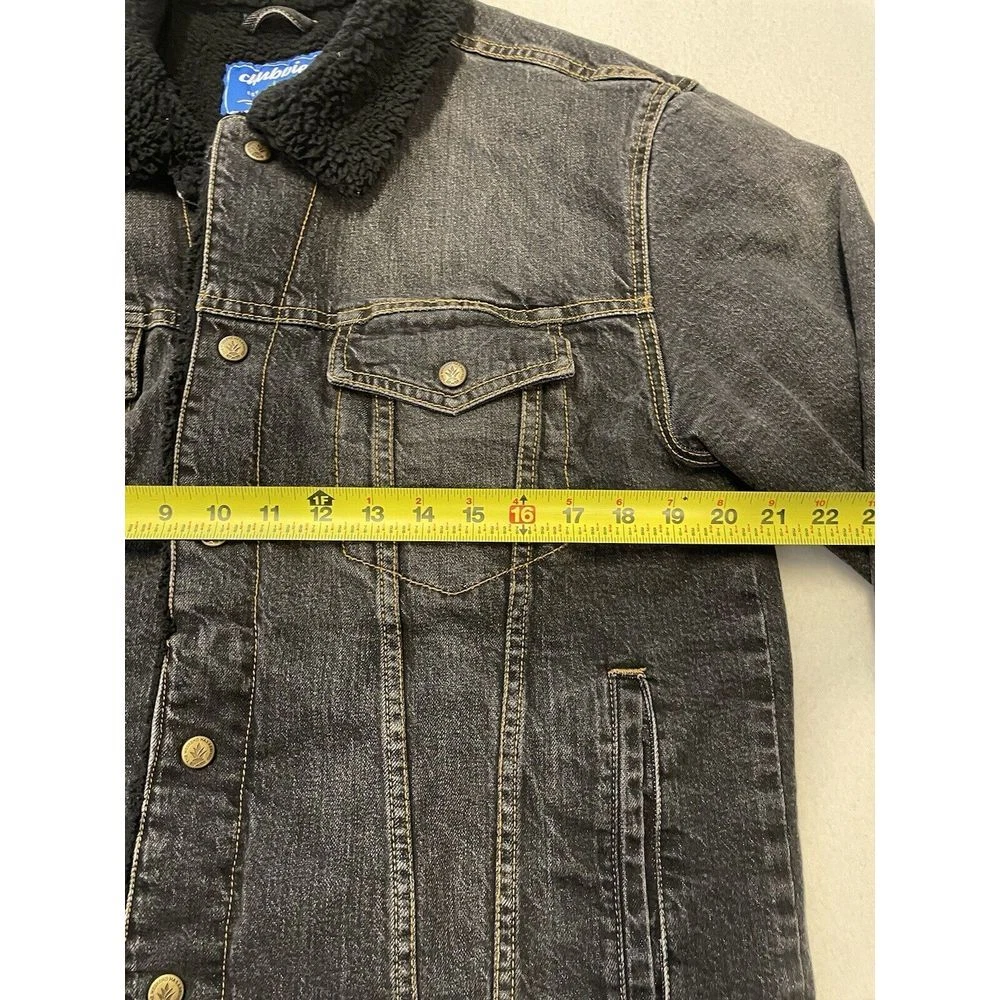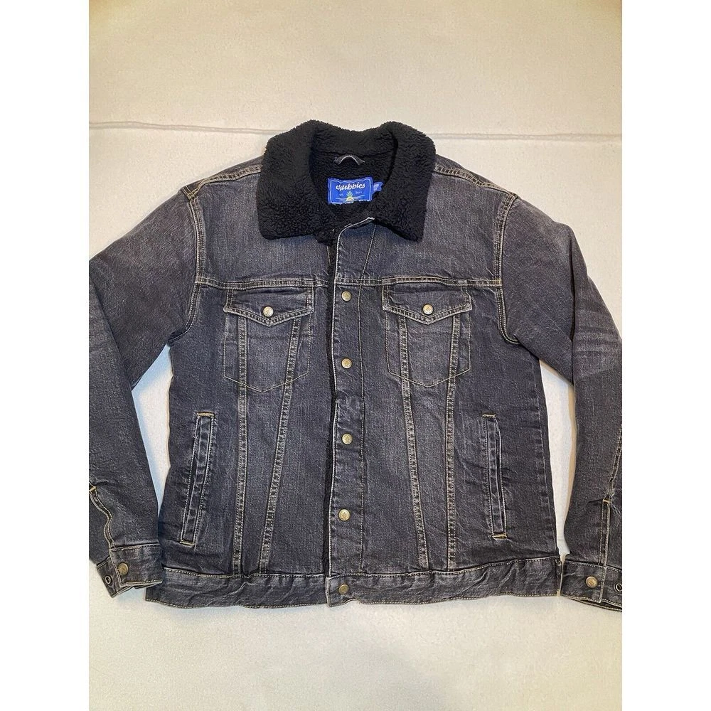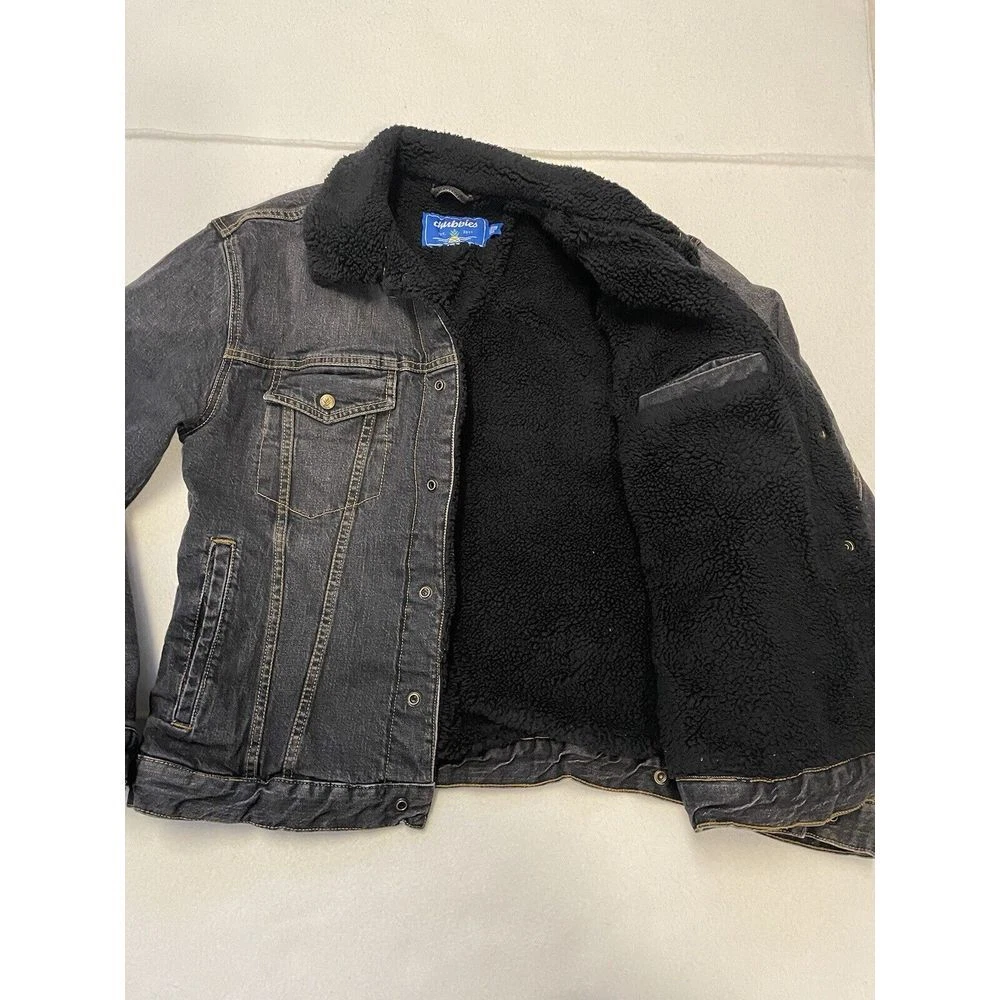 -Used. Sold as is -FITS LIKE A SIZE LARGE** -See photos for measurements -Fast shipping!!! Both stylish and functional, the Chubbies Denim Jean Jacket in a versatile black color is a wardrobe essential for those who appreciate a blend of classic and contemporary. Lots of very impressive stitching and added details. The mid-length Trucker style jacket is Sherpa lined and extra warm! Ensuring warmth during the cooler seasons of fall, spring, and winter.