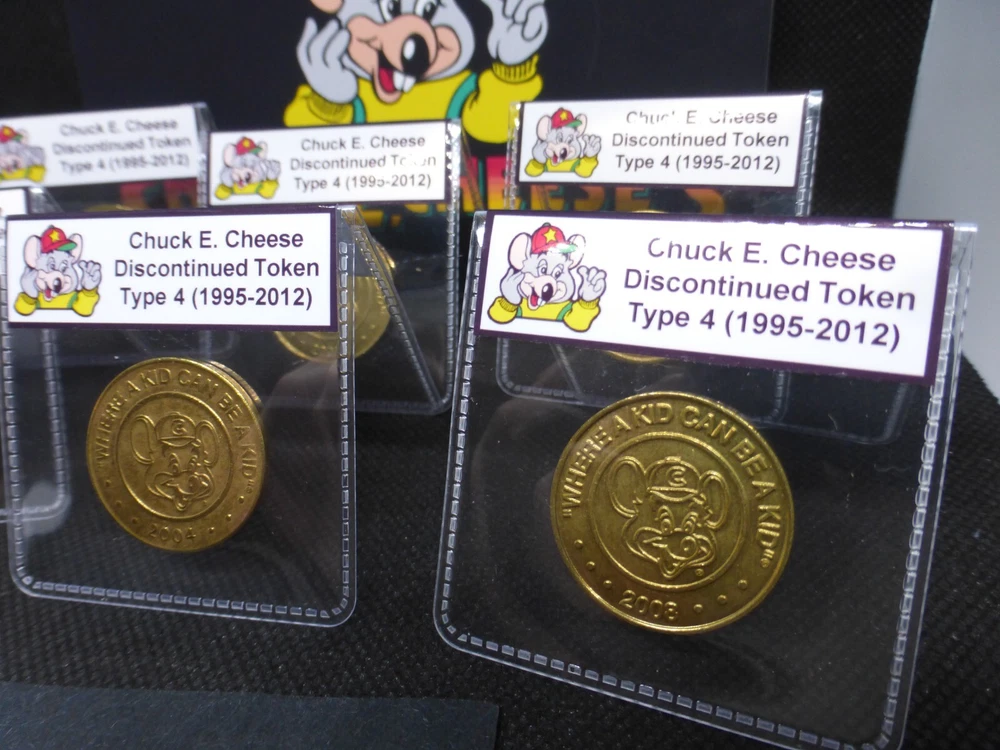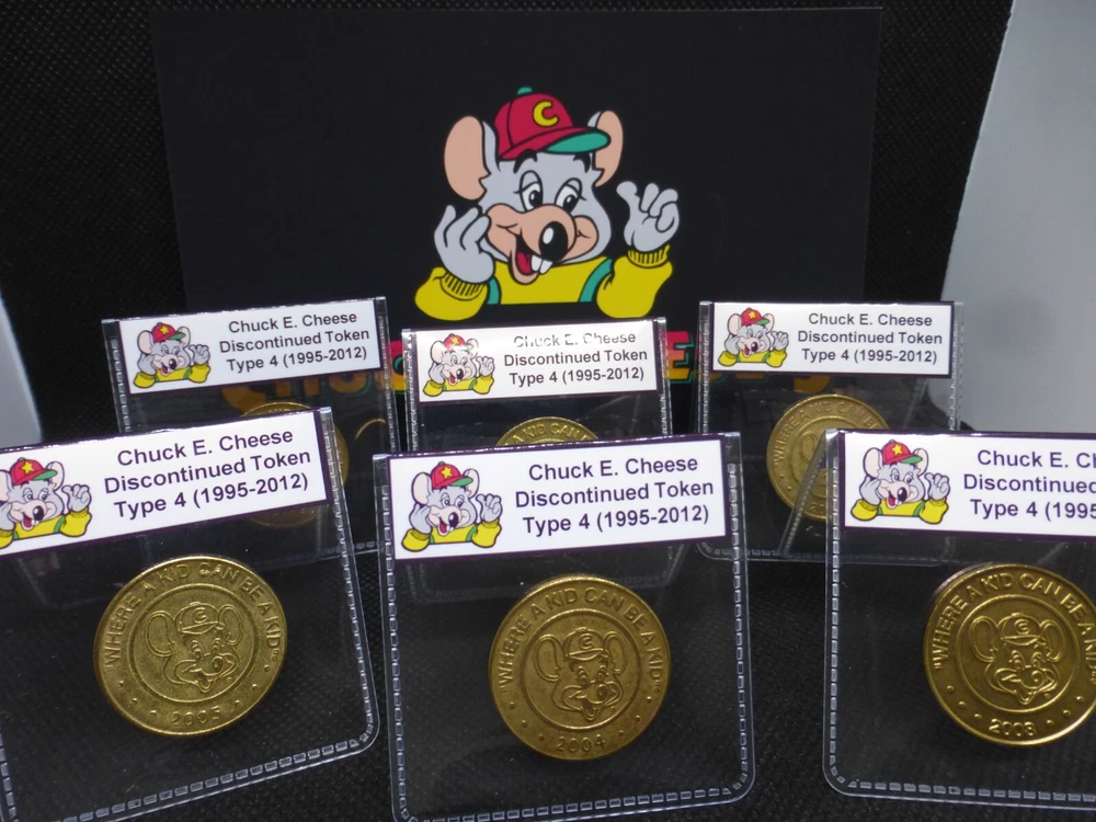 This listing is for a single (1) Type 4 Chuck E. Cheese token. These were available from 1995 to 2012 and are referred to as the Juvenile Mouse Head. These are now collector's items due to them no longer being produced. Each Type 4 token in your order will be in a labeled holder as shown. Ordering multiple tokens will get you different years. The tokens from this listing are in Very Fine (VF) condition or better, with representative examples shown. 1 order = 1 token, 2 orders = 2 tokens, etc.