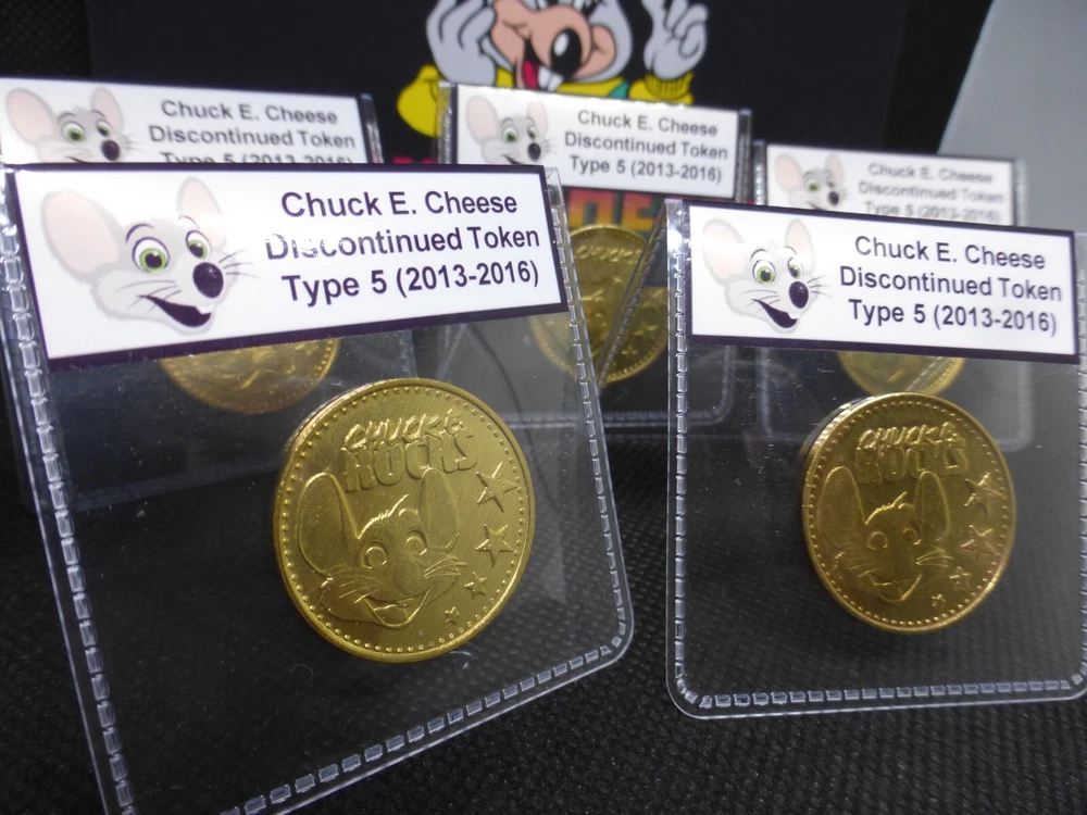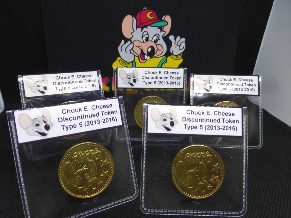 This listing is for a single (1) Type 5 Chuck E. Cheese token. These were available from 2013 to 2016 and are referred to as the Baby Mouse Head. These are now collector's items due to them no longer being produced. This listing is specifically for tokens from 2013 to 2015. Each Type 5 token in your order will be within a labeled holder as shown in the pictures. Each coin will be in Very Fine (VF) condition or better, with representative examples shown. 1 order = 1 token, 2 orders = 2 tokens, etc.