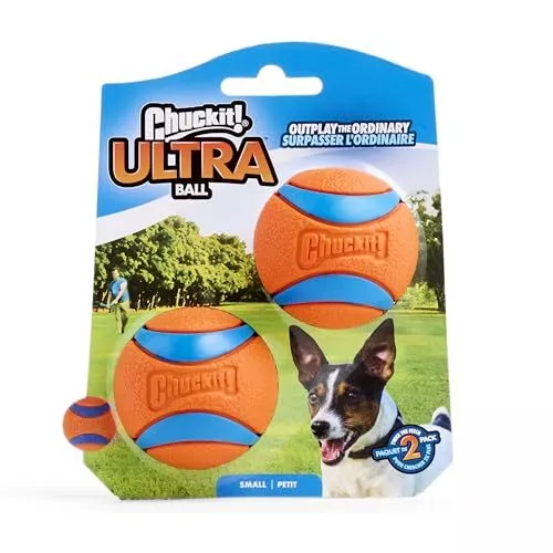 Chuckit! Ultra Ball Dog Toy - Small Bouncy Fetch Balls For Dogs 0-20 lbs - Made from Durable Rubber - Floating Water Pet Toys - Size Small - 2-inch Diameter - Pack of 2 SUPER HIGH BOUNCE: Take fetch to new heights with the Ultra Ball, compatible with small Chuckit! launchers. Made from durable rubber, this ultra-bouncy ball outperforms standard tennis balls. Lightweight and buoyant, it's perfect for exciting adventures on land and water. DURABLE RUBBER BALL: Built tough for revolutionary fetch games, our rugged dog toy features a textured surface and a thick rubber core that can withstand rough play. It's soft on your dog's mouth, but no toy is truly indestructible and not intended as a chew toy or for aggressive chewers. SIZING MATTERS: The small Ultra Ball is 2 inches in diameter and best suited for breeds weighing 0-20lbs. Dog balls should always be small enough for your pet to carry but large enough that the ball cannot completely fit in their mouth. When in doubt, buy a size up. MAKE FETCH HAPPEN: Chuckit! toys make the best gifts for pet lovers. The Ultra Ball is just one of many indoor and outdoor interactive dog toy options we offer, including tumblers, tennis balls, and more. As the stocking stuffers, Chuckit! toys have something for every pet. CHUCKIT!: For 20 years, Chuckit! has been leading the game of fetch. The special connection between pets and owners is at the heart of every toy we make. With iconic shapes and vibrant colors, Chuckit! toys elevate every adventure, strengthening the bond between you and your furry friend. The Chuckit! Ultra Ball dog toy is a must-have for pet owners who love playing fetch with their furry friends. This durable rubber ball is designed to provide an extra high bounce, much better than standard tennis balls. Whether on land or water, this ball's ultra-bouncy, lightweight, and buoyant design offers an exciting fetch experience that dogs love. This rugged dog fetch toy has a textured surface and a thick rubber core. It's soft on your dog's mouth, but no toy is truly indestructible and not intended as a chew toy or for aggressive chewers. Ensure that the ball can't completely fit in their mouth. When in doubt, buy a size up. Always supervise your dog when playing with this toy to ensure their safety. Shipping We offer FREE shipping on all orders! We ship within Three business days of payment, usually sooner. We use a selection of shipping services such as UPS, FedEx, USPS etc. We only ship to the lower 48 states, no APO/FPO addresses or PO Boxes allowed. Local pickups and combined shipping options are not provided at this time. Return You can return a product for up to 30 days from the date you purchased it. Any product you return must be in the same condition you received it and in the original packaging. Please keep the receipt. Payment We accept payment by any of the following methods: PayPal Please pay as soon as possible after winning an auction, as that will allow us to post your item to you sooner! Feedback Customer satisfaction is very important to us. If you have any problem with your order, please contact us and we will do our best to make you satisfied. Contact Us If you have any queries, please contact us via ebay. We usually respond within 24 hours on weekdays. Please visit our eBay store to check out other items for sale! Thank you for shopping at our store.