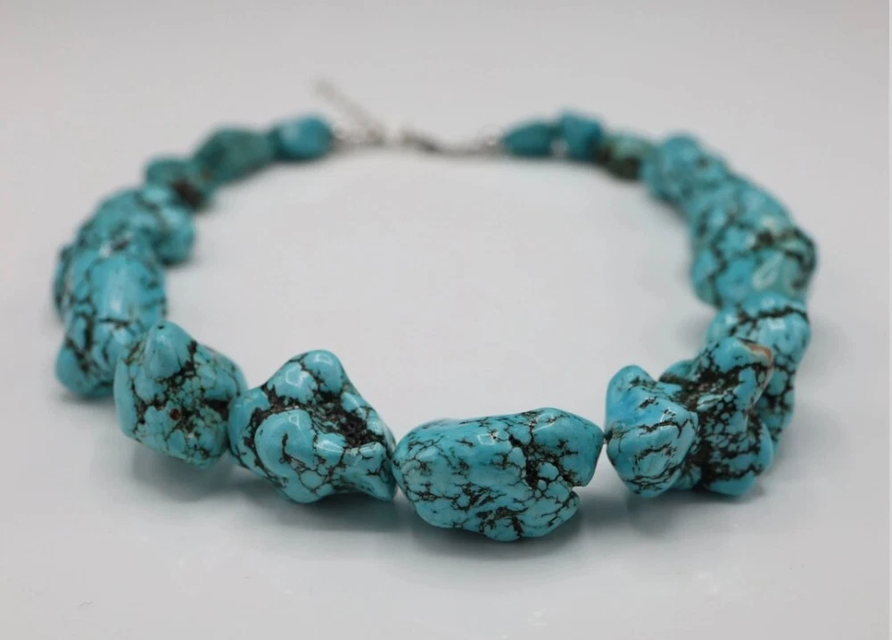 Genuine Statement Turquoise Necklace. This is the cutest statement turquoise necklace, It is all natural and the perfect addition to your jewelry collection. It goes beautifully with a casual or formal outfit or occasion due to the versatility of turquoise stones. These types of chunky/thick turquoise beaded necklaces have been very popular lately due to the beautiful blues and greens of the beads. ~-The turquoise beads are approximately 20-30 mm --Sterling silver option dos not come with extension chain. **Do not use liquid chemicals on the beads, just use a polishing cloth** Our items are shipped in a nice mesh pouch in a gift box. _________________________________________________________________________ All jewelry needs to be returned unworn and in its original condition and packaging. Earrings are NOT returnable for hygiene reasons. We hold the right to deny a return if the product you have sent back does not meet our requirements. You are responsible for the return shipping costs unless there has been a mistake on our end or an issue with the piece. If you are not satisfied with your purchase, please message us so we can fix any issues. We will look forward to seeing your positive review, which will help us in the future as we are a small family-owned business. THANK YOU VERY MUCH for visiting our store! We hope you come by again.