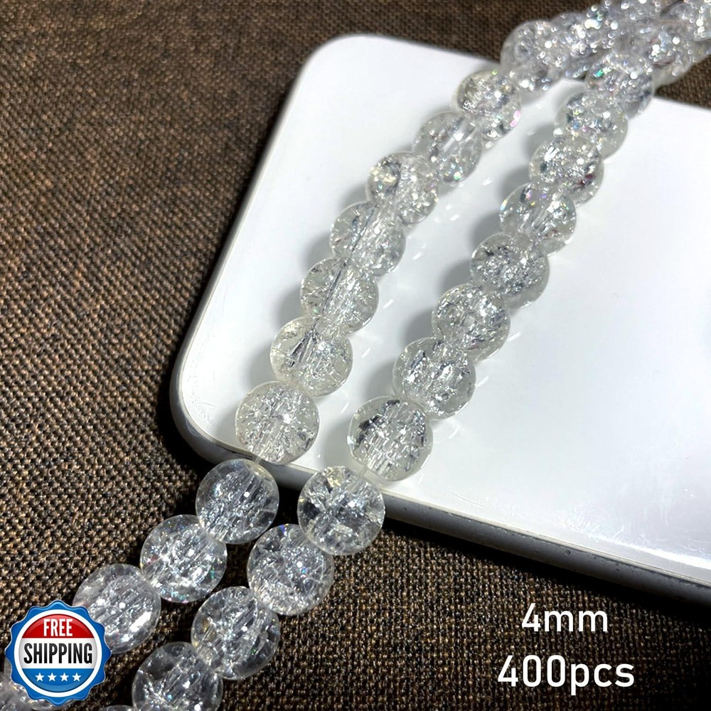 Chuxin 400pcs Crackle Crystal Glass Beads, 4mm White Round Spacer Glass Beads for Jewelry Making, Crafts Crystal Beads Bulk Loose Beads for DIY Craft Earring Necklace Bracelet Jewelry Features ✨High Quality : Chuxin Crackle Glass Beads made of high quality glass. Smooth surface, good transparency, not fade. The irregular cracks inside the beads make each bead unique and irreplaceable. Used Crackle Crystal Beads to create your unique handmade. ✨Quantity and Size: 4mm (400 pieces) round crystal beads, 6mm (265 pieces) round crystal loose beads and 8mm (200 pieces) round glass bulk beads, our glass beads Variety of colors, moderate hole size(about 1mm), offering a spectrum of options to match every design inspiration and personal style. Please choose the appropriate size according to your handmade. ✨Widely Use: These crystal glass beads can be used in a variety of jewelry-making projects, including bracelets, necklaces, earrings, wine charms, wind chimes and sun catchers. Unleash your creativity and fashion stunning pieces for any occasion. ✨As a Gift: Share the joy of crafting with friends, loved ones, colleagues, and family by gifting them these exquisite crackled glass beads, perfect for expressing appreciation and affection. ✨Quality Packaging: The crystal glass beads put in Ziplock Bag, After use, you can put the beads in the ziplock bag to facilitate the next jewelry making. We guarantee the correct number of rondelle glass beads in the bag! Shipping Free & Fast Shipping: We offer free shipping to most of the USA with a normal delivery time of 3-7 days. However, due to the current situation, additional delivery time (up to 3 weeks) may be required for some items. Alternative Carriers: We may use alternative carriers (e.g., USPS, FedEx, UPS) to ensure your package arrives safely and on time. Due to the use of multiple carriers, we are unable to provide a tracking number automatically. Handling Time: Orders are processed and shipped within 1-2 business days of receiving cleared payment. Shipping Restrictions: Shipping to Alaska, Hawaii, Puerto Rico, Guam, and other US territories may incur shipping charges or delivery restrictions. Please contact us before ordering, or your order can be refunded/cancelled. State Restrictions: Certain items may not be shipped to California due to state regulations. Contact for Tracking Updates: If you require tracking updates or have any concerns about the delivery of your order, please feel free to contact us, and we will be happy to assist you. Return Policy 30-Day Hassle-Free Returns: If you are not completely satisfied with your purchase, you can return the item for free within 30 days of receiving it for a full refund or exchange. Easy Return Process: Contact us, and we will provide you with a prepaid return shipping label and detailed instructions. No Restocking Fee: There are no restocking fees for returns. However, the buyer is responsible for return shipping costs if the return is not due to a seller"s error. Refund Processing: Refunds will be processed within 1 business day of receiving the returned item in its original condition. Feedback Your feedback is extremely important to us. We strive to provide the best products and customer service possible. If you are satisfied with your purchase, please take a moment to leave us a positive review. If you have any concerns or issues with your order, please contact us before leaving negative feedback. We are committed to resolving any problems and ensuring your satisfaction. Contact Us If you have any questions or concerns, please feel free to reach out to our customer support team. You can contact us through the eBay messaging system. We are available Monday to Friday, 9:00 am to 5:00 pm EST, and we will do our best to respond to your inquiry within 24 hours. Thank you for supporting our small family business!