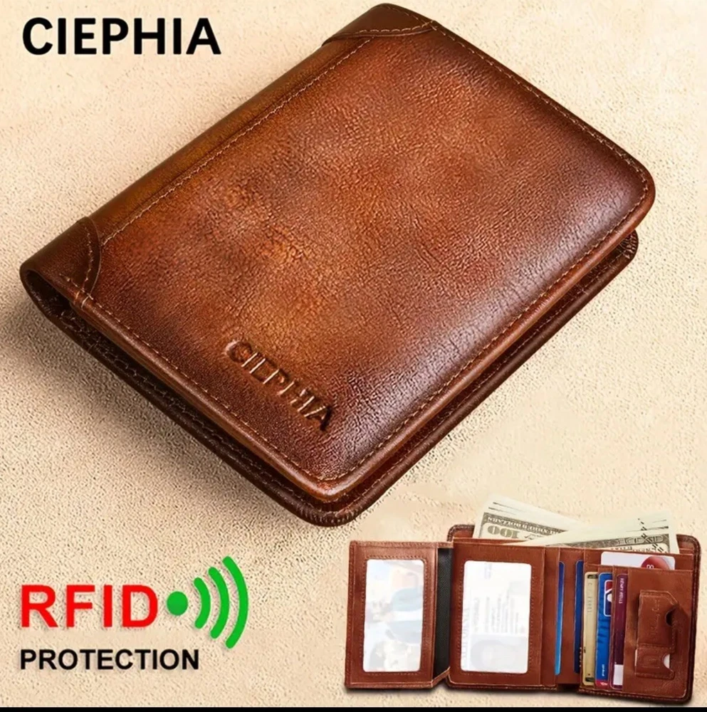 Ciephia Mens Genuine Leather Trifold Wallet with RFID Blocking - Brown. Condition is New with tags. Shipped with USPS Ground Advantage.