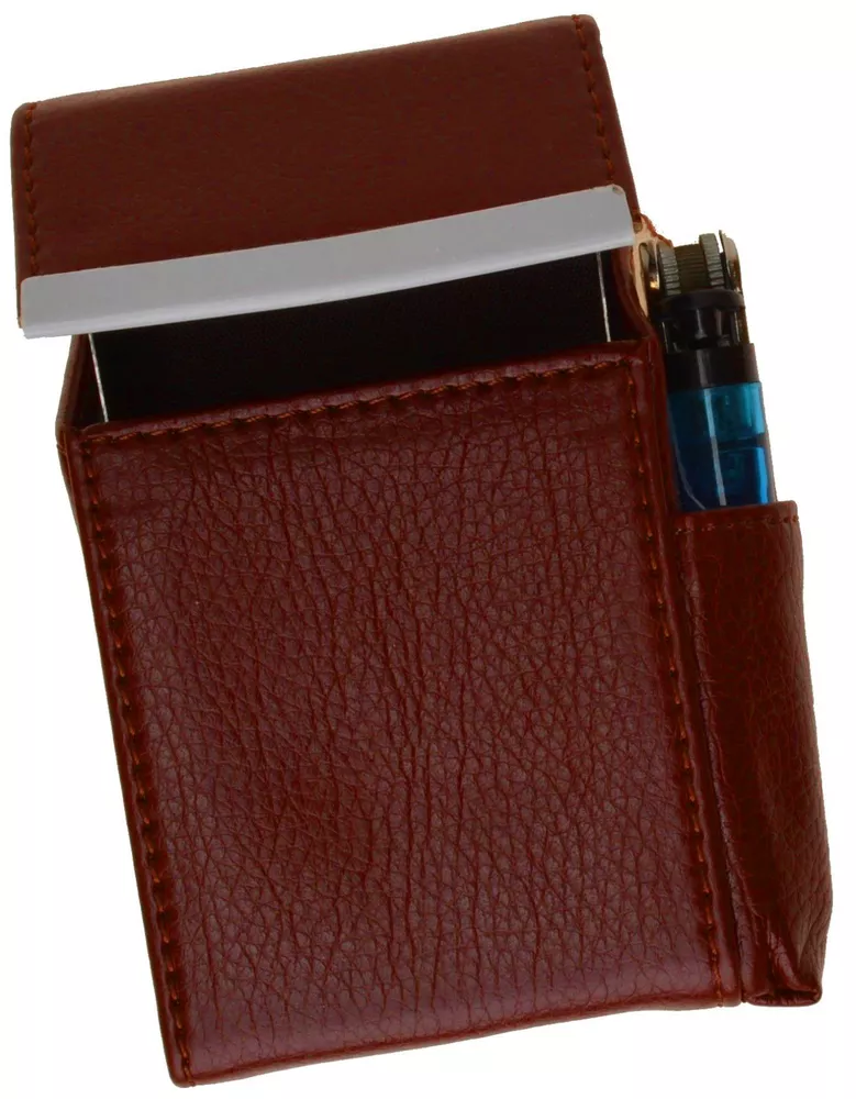 Cigarette Hard Case Genuine Leather Men Lady Lighter 100's or Regular Holder Features: · High quality genuine leather cigarette case. · Hard Case · Lighter holder pocket · Estimated Size: 2.5" x 1.25" x 4.25" · Pocket on side for lighter; Belt attachment · Perfect for everyday use or gift · Precaution: Minor manufacturing variation may occur on different colors/model · 92812 Hard Case Pictures and spec are for reference only and the leather goods is the only thing that we are selling. Natural product may result in size variation due to temperature and weather. Thank you for your understanding. 100% Satisfaction Guaranteed! --- " International buyers – please note : Import duties, taxes, and charges aren't included in the item price or postage cost. These charges are the buyer's responsibility. "Please check with your country's customs office to determine what these additional costs will be prior to bidding or buying." Payment Shipping Returns PayPal is the preferred payment method. We ship every day Monday - Friday. We hope you will love your purchase, however if you need to return it, we have a 30 day return policy. Special Offers Special Bulk Purchase Discounts! Shop Now Special Discounts! Shop today! Special Bulk Purchase Discounts! Shop Now Powerful eBay listing templates by 3Dsellers About Us: Our leather product is made from the finest leather that will look better and better as they age. It will develop an extraordinary countenance as it crosses through life with you. Disclaimers: Pictures and spec are for reference only with the best effort that we can provide. Natural products may result in size and color variation due to temperature and weather. Minor scratches and pigment are normal for leather goods. We are selling the leather goods only; no other props display will be included. International buyers: Import duties, taxes, and charges aren't included in the item price or postage cost. These charges are the buyer's responsibility. Please check with your country's customs office to determine what these additional costs will be before bidding or buying.