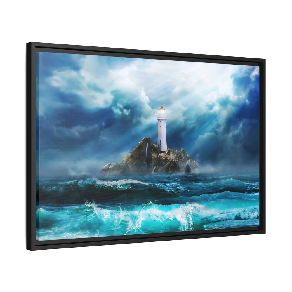 Cinematic Coastal Lighthouse Illustration by Hypnotik Creations Product Description: Immerse yourself in the serene beauty of the coast with this cinematic coastal illustration by Hypnotik Creations. This enchanting artwork features a picturesque white lighthouse perched atop a rocky island, complemented by a cascading waterfall and a mesmerizing blue surf seascape. Sunbeams pierce through dramatic clouds, casting a radiant glow across the scene, evoking a sense of nautical charm and tranquility. Expertly printed on museum-quality cotton-polyester composite gallery-wrapped canvas , this artwork boasts vibrant colors and remarkable detail, protected by a special proprietary matte finish coating for lasting brilliance. The high-definition imagery is produced using UL-certified Greenguard Gold inks and latex inks that are non-hazardous, non-toxic, and non-flammable. Encased in a 1.25" solid pine wood frame , available in white or black, the frame enhances the artwork with a modern floating effect. Sustainably sourced and Forest Stewardship Council certified , the frame is an eco-friendly choice, perfect for any interior space. The canvas comes ready to hang straight out of the box , equipped with sawtooth hanging hardware for hassle-free installation. Please note: slight size deviations may occur due to the production process (+/- 1/8", or 3.2mm). To maintain its pristine condition, simply wipe the surface gently with a clean, damp cloth if it gathers dust. Key Features: Cinematic Illustration: Features a lighthouse on a rock island, a small waterfall, blue surf, and sunbeams breaking through clouds. Premium Printing: Expertly printed on museum-quality cotton-polyester composite canvas with vibrant, long-lasting colors. Eco-Friendly Materials: Made with sustainably sourced Forest Stewardship Council-certified pine wood . High-Quality Inks: Utilizes UL-certified Greenguard Gold inks and latex inks that are safe, non-toxic, and non-flammable. Modern Framing: 1.25" solid pine wood frame in black or white with a floating effect. Ready to Hang: Equipped with sawtooth hardware for easy installation. Durable and Low Maintenance: Matte finish coating protects against dust and fading; clean gently with a damp cloth as needed. Size Tolerance: Minor size deviations (+/- 1/8", or 3.2mm) due to the production process. Frame Color Options: Black & White. Size Options: 30x20, 36x24 & 48x32 Enhance your home or office with this nautical masterpiece , blending natural beauty with timeless coastal charm. * Shipping to Alaska, Hawaii, and unincorporated territories of the United States can take additional 7 ? 12 business days, weather permitting.
