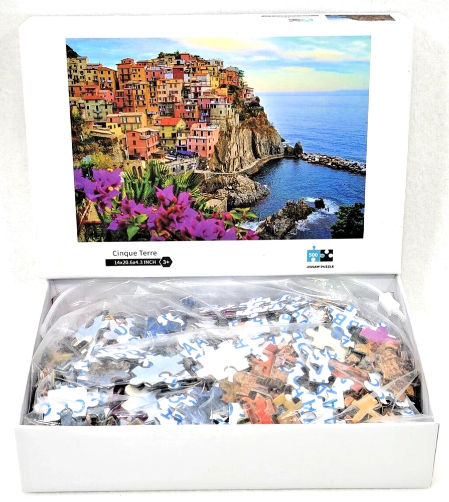 This puzzle is of a pleasant Mediterranean location. It's 500 pieces will provide a relatively easy to construct sense of well-being. The pleasant view will come into focus the further you get into its construction. Doing puzzles has some hidden benefits. Excellent qualities : Cultivate concentration, patience, and temper your will Movement development : Train hand-eye coordination and precise small movements Spatial intelligence : Improve visual discrimination of colors and shapes Critical thinking ability : Understand the relationship between parts and the whole, and draw inferences from one example to explore the future Relaxes your mind : Relieve work pressure and release yourself Brain development : Enhance memory and may help prevent or slow brain degeneration We did not work the puzzle or count the pieces, but we verify the number count at your request . Each item is carefully packaged to prevent any damage and is shipped immediately with tracking.