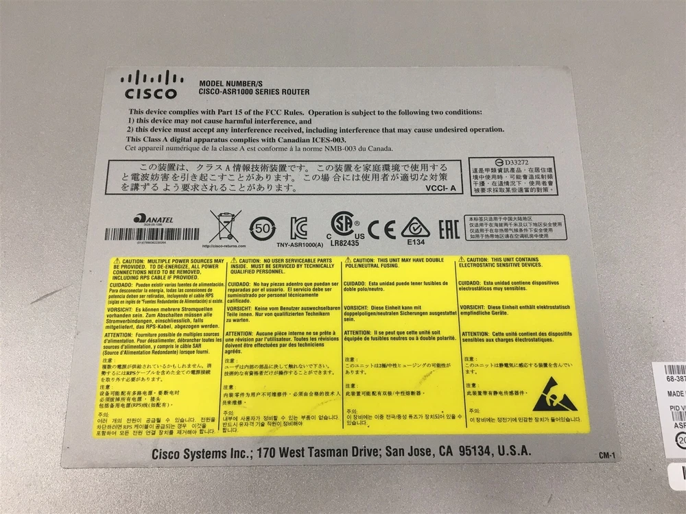Cisco ASR1002-X Services Router Chassis Only w/ Dual PSU Rack Ears *** Condition Information & What's Included *** IMPORTANT! Cryptographic features. Sales in U.S. only (will not work in international environments). INCLUDES: Chassis only w/ dual PSU & rack ear brackets. DAMAGES: No processor/ supervisor engine, unit is chassis only. These items have been tested, reset to factory defaults, and are guaranteed to be in good working condition. Outer Case may show some minor scratches/scuffs from normal use. Note: If it's not in the pictures or specifically mentioned in the description text, it's probably not included. Please contact us with any questions if further clarification of the condition description is needed. Payment & Warranty Shipping Equipment Condition About Us Data & Privacy Payment & Warranty Warranty : We offer a full 30-day money back guarantee from the date of delivery. Please note: All returns are subject to the eBay Money Back Guarantee Policy. Read the full eBay Money Back Guarantee Policy here . Payment Methods : We subscribe to eBay Managed Payments. As of the time of this posting, eBay Managed Payments accepts the following payment methods (subject to change): Credit, debit, and gift cards, Apple Pay, Google Pay, PayPal, and PayPal Credit. Sales Tax Information : Most states now require online sellers or marketplaces to collect sales tax. Additionally, in the absence of any other taxation provisions, we are legally required to charge Sales Tax for any state where we (EPC, inc.) or our parent company (CSI Leasing) have a physical representation or provide a service. Taxes are assessed according to the shipping address and are not based on the billing address. Shipping Domestic Shipping : After payment is received, most orders (including orders with expedited shipping) will have a (1) business day handling time. We use UPS, FedEx, or USPS as a FREE shipping service on most of our listings. When offering free shipping, we reserve the right to change the shipping method/carrier without notice. If a specific delivery type is required (i.e., USPS does not deliver to your location), please make sure to mention any pertinent details in your payment notes and we will do our best to accommodate all reasonable requests. International Shipping : Please note: We utilize the eBay EIS (eBay International Shipping Program) for all international shipments. After payment is received, most orders (including orders with expedited shipping) will have a (1) business day handling time. EIS buyers will be charged US shipping costs that the seller has specified, as well as international shipping, handling, and other fees as determined by eBay. Import charges may be collected from the buyer at checkout or on delivery, either through customs or directly by the carrier. These charges include any customs duties, taxes, brokerage, and other fees. IMPORTANT : The use of a Mail Forwarding service is not covered under the eBay Money Back Guarantee. Customers utilizing a forwarding service to bypass the eBay EIS for international shipments will not be covered under any warranty and may have their order canceled/refunded before shipping without notice. Equipment Condition EPC, inc. is proud to offer business-grade I.T. and Computer equipment of all kinds. Most of our equipment is "Off-Lease", used equipment, so whether it's a laptop, desktop, monitor, printer, or one of our other amazing deals, each piece is likely coming to you from a working business-type environment. While the physical condition of our used equipment may have minor scratches, blemishes, or other deficiencies from regular use, each piece is guaranteed to be in good working condition. Please check each listing's description carefully. Our Certified Technicians inspect our used equipment and verify it to be in good working condition before we post it for sale. However, while most of our items are ready to go right out of the box, some of our equipment may be missing individual components such as a battery, power adapter, printer ribbons, etc. You may need to purchase certain items separately to get all key features up and running at peak performance. About Us EPC, Inc. has been in business since 1984 and is a wholly-owned subsidiary of CSI Leasing - the largest independent I.T. leasing company in the United States! We are a full-service, technology-driven business and we are ready to provide you with today's best computer-based solutions. Whether it be for home or business, we've got you covered! Hours of operation: Internet Sales Department - Saint Charles, Missouri. USA Open Monday-Friday, 9am-5pm Central Time. We are closed on weekends and holidays. Data & Privacy Executive Personal Computers Inc. (EPC) Global Privacy Policy Effective date: July 15th, 2018 Introduction : Your privacy is important to Executive Personal Computers Inc (EPC), and its global affiliates (collectively “EPC” or “we” or “our”). This Policy explains what Personal Data we collect from you, why we collect and process your personal data, when and with whom your personal data is shared, and your rights with respect to your Personal Data. In this Policy the term “Personal Data” means data that identifies or may be used to identify an individual person, including, but not limited to, a person’s name, date of birth, job title, address, email, phone number, or employer. In order to provide outstanding service, we must collect, maintain and process certain Personal Data about our customers, suppliers and other business contacts. We recognize and respect your privacy concerns and expectations about how we use this information. We want you to know about our privacy policies and practices, and what we do to protect your Personal Data. Please visit the URL below to view our full privacy policy : https://epcglobalsolutions.com/epc-policies/ Sold By: epcsales - Saint Charles Estimated Shipping Weight & Dimensions: 23.00 Lbs. - 24.00 x 21.00 x 13.00" Stock