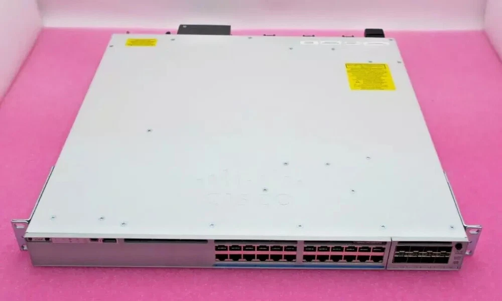 Cisco Catalyst C9300-24UXB-A 24x 10G/mGig RJ45 UPoE Network Switch + C9300-NM-8X Switch Model: C9300-24UXB-A In Good Condition And Full Working Order UK/EU serial, the serial numbers are clean and not covered onSmartnet Includes: 1 x Cisco Catalyst C9300-24UXB-A 24x 10G/mGig RJ45 UPoE L3 Network Switch With: 1 x Cisco C9300-NM-8X 8x 10GbE SFP+ Port Module 1 x 1100W Power Supply PWR-C1-1100WAC-P 3 x Fan Modules FAN-T2 1 x Cisco 120GB USB 3.0 Solid State Drive SSD SSD-120G Manufacturer Specification: Product Description: Catalyst 9300 Deep Buffer 24p mGig, UPOE, Network Advantage FRU Power Supply: Yes FRU Fans: Yes Modular Uplinks: Yes Stacking Bandwidth Support: 480 Gbps Cisco StackPower: Yes Catalyst 9800 Embedded WLC: Yes (200 APs) SD-Access Support: Yes (256 Virtual Networks) Total 10/100/1000,Multigigabit copper or SFP Fiber: 24 Multigigabit Cisco UPOE (100M, 1G, 2.5G, 5G, or 10 Gbps) Uplink Configuration: Modular Uplinks Default AC power supply: 1100W AC Available PoE power: 560W Total number of MAC addresses: 64,000 Total number of IPv4 routes (ARP plus learned routes): 64,000 IPv6 routing entries: 32,000 Multicast routing scale: 16,000 QoS scale entries: 18,000 ACL scale entries: 18,000 Packet buffer per SKU: 32 MB buffer for 24- and 48-port Gigabit Ethernet models 64 MB buffer for 24-port Multigigabit model (24UXB) FNF entries: 128,000 flow on 24- and 48-port Gigabit Ethernet models 256,000 flows on 24-port Multigigabit DRAM: 8 GB Flash: 16 GB VLAN IDs: 4094 Total Switched Virtual Interfaces (SVIs): 1000 Jumbo frames: 9198 bytes Total routed ports per Catalyst 9300 Series stack: 448 Switching capacity: 640 Gbps Switching capacity with stacking: 1120 Gbps Forwarding rate: 476.19 Mpps Forwarding rate with stacking: 833.33 Mpps Dimensions (H x W x D) inches: Chassis only: 1.73 x 17.5 x 17.1 W/ Default Power Supply: 1.73 x 17.5 x 20.2 W/ 1100W Power Supply: 1.73 x 17.5 x 20.2 Mean Time Between Failures-MTBF (hours): 288,520 Boot Log Switch#show inventory NAME: "c93xx Stack", DESCR: "c93xx Stack" PID: C9300-24UXB , VID: V01 , SN: FOC2529LHET NAME: "Switch 1", DESCR: "C9300-24UXB" PID: C9300-24UXB , VID: V01 , SN: FOC2529LHET NAME: "Switch 1 - Power Supply A", DESCR: "Switch 1 - Power Supply A" PID: PWR-C1-1100WAC-P , VID: V01 , SN: DCC2522DG0Z NAME: "Switch 1 FRU Uplink Module 1", DESCR: "8x10G Uplink Module" PID: C9300-NM-8X , VID: V03 , SN: FJZ252412AN NAME: "usbflash1", DESCR: "usbflash1-1" PID: SSD-120G , VID: 3.10 , SN: STP24310K7N Switch#show license usage License Authorization: Status: Not Applicable network-advantage (C9300-24 Network Advantage): Description: C9300-24 Network Advantage Count: 1 Version: 1.0 Status: IN USE Export status: NOT RESTRICTED Feature Name: network-advantage Feature Description: C9300-24 Network Advantage Enforcement type: NOT ENFORCED License type: Perpetual dna-advantage (C9300-24 DNA Advantage): Description: C9300-24 DNA Advantage Count: 1 Version: 1.0 Status: IN USE Export status: NOT RESTRICTED Feature Name: dna-advantage Feature Description: C9300-24 DNA Advantage Enforcement type: NOT ENFORCED License type: Subscription Switch#show license summary Account Information: Smart Account: